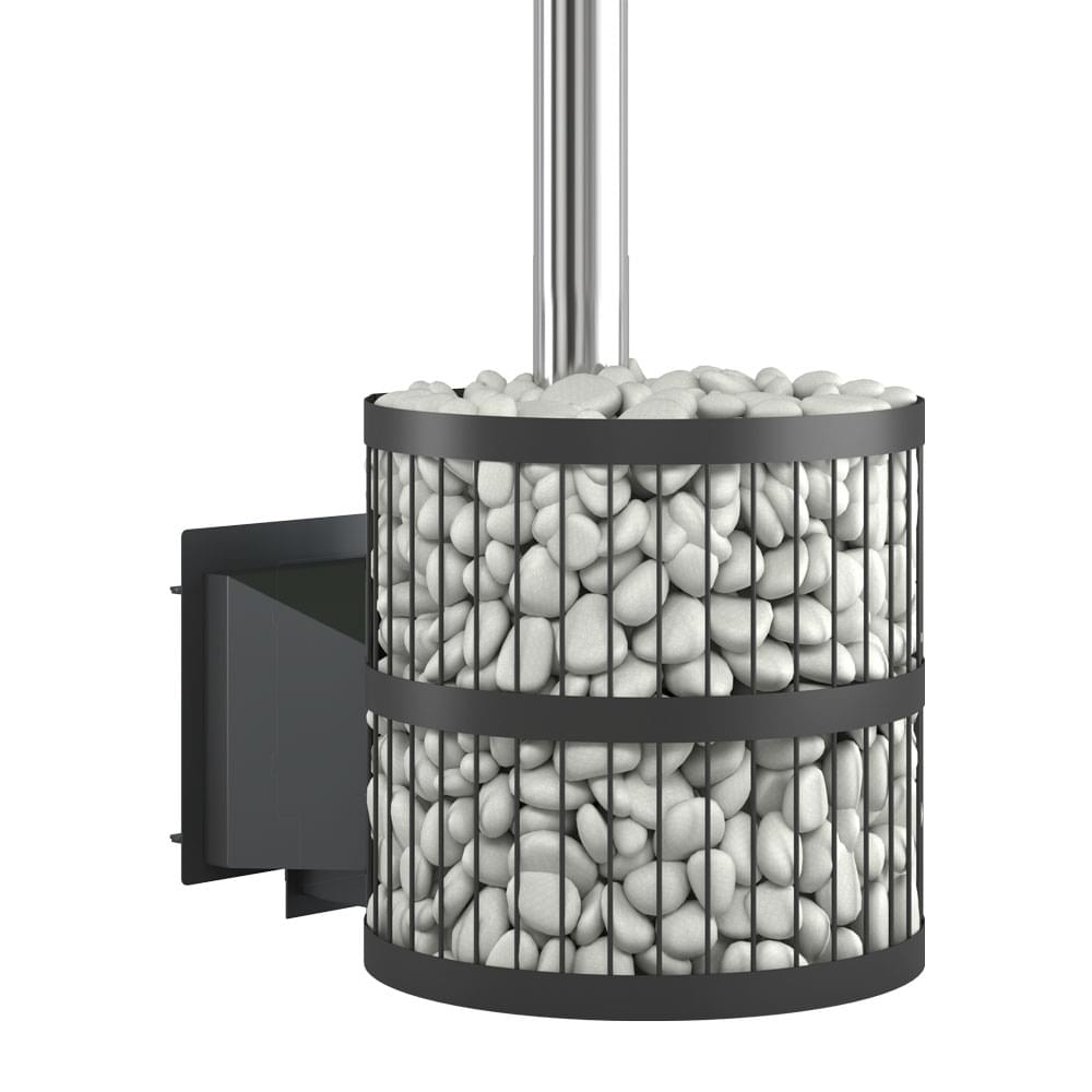 Чугунная банная печь на дровах ЭТНА 24 (Панорама) "М" Стандарт со стеклом, с топочным выносом, с открытой камнкой сеткой СТАНДАРТ на 150 кг камней, и закрытой каменкой, отапливает баню объемом от 12 до 24 м3.