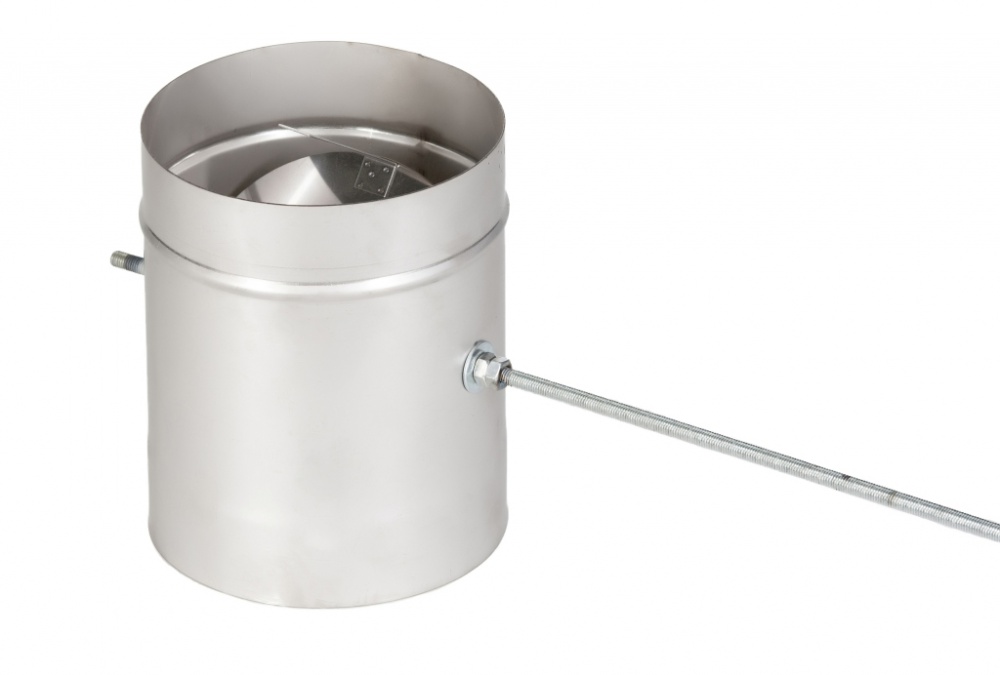 Для регулирования тяги путем перекрытия дымового канала используется дымовая труба из нержавейки с шибером, а также в качестве заслонки на неэксплуатируемом камине с открытой топкой для предотвращения оттока теплого воздуха из помещения через дымоход. Шибер поворотный 1ШП представляет собой трубу с вмонтированной поворотной заслонкой и выведенной наружу рукояткой.