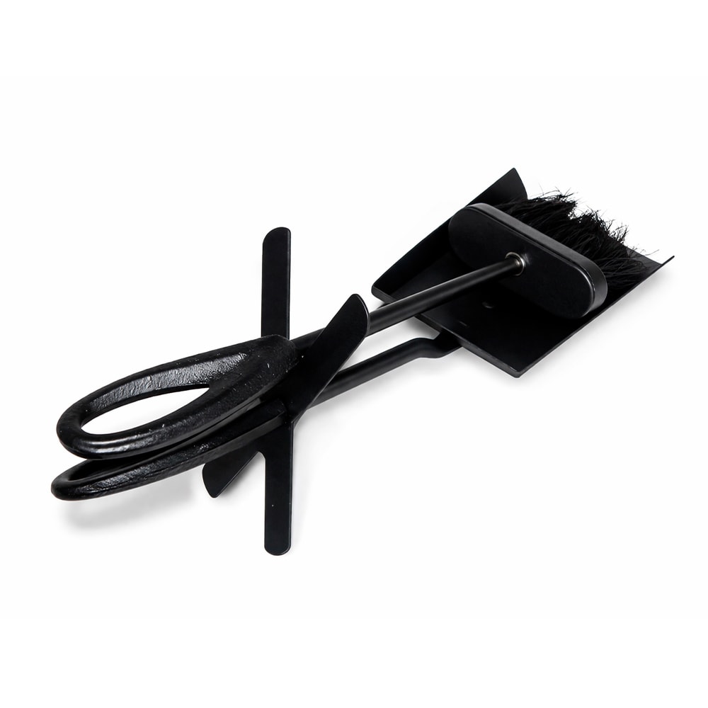 Стандартный набор для камина включает три основных инструмента: кочерга, совок и щетка. Кочерга нужна для ворошения углей и перемещения дров. Совок предназначен для сбора и удаления золы. Щетка необходима для очистки камина от пепла. Все предметы изготовлены из стали и имеют черный цвет.