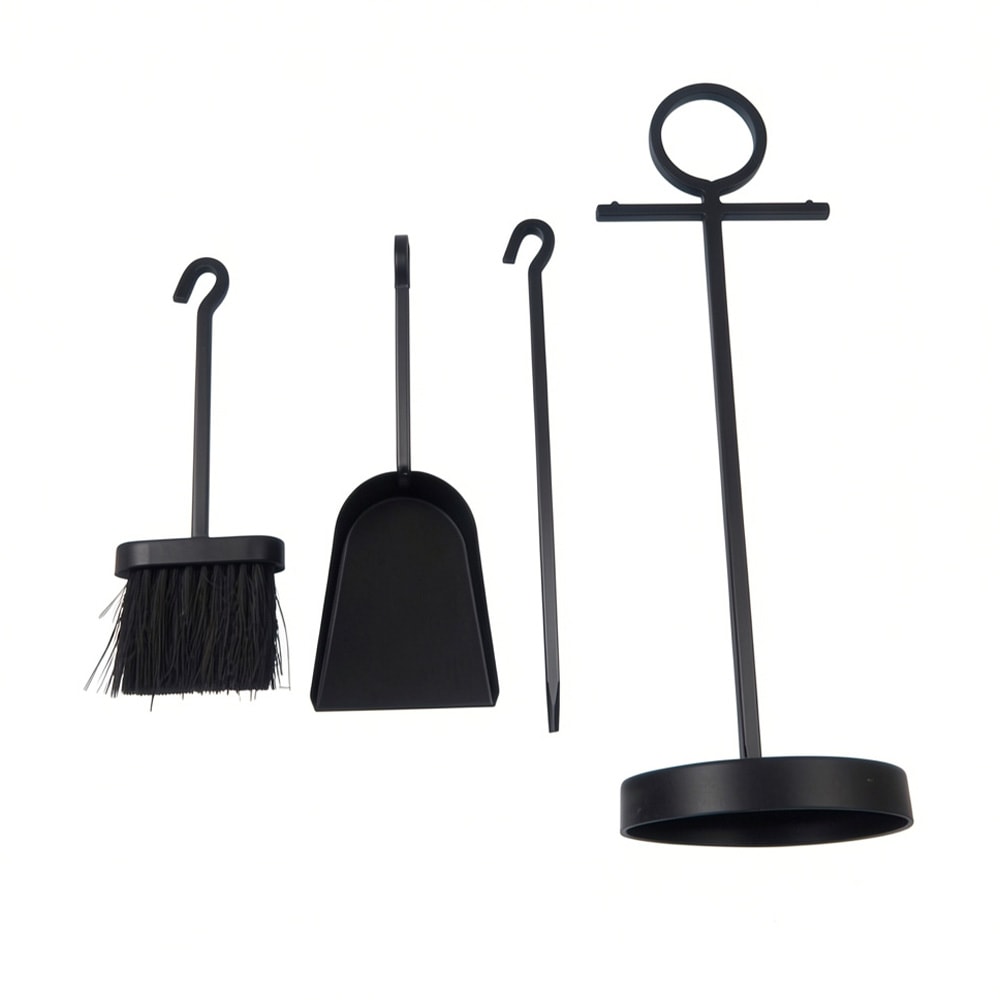Этот комплект для уборки камина изготовлен из стали. Материал выдерживает контакт с огнем. Цвет набора - черный.