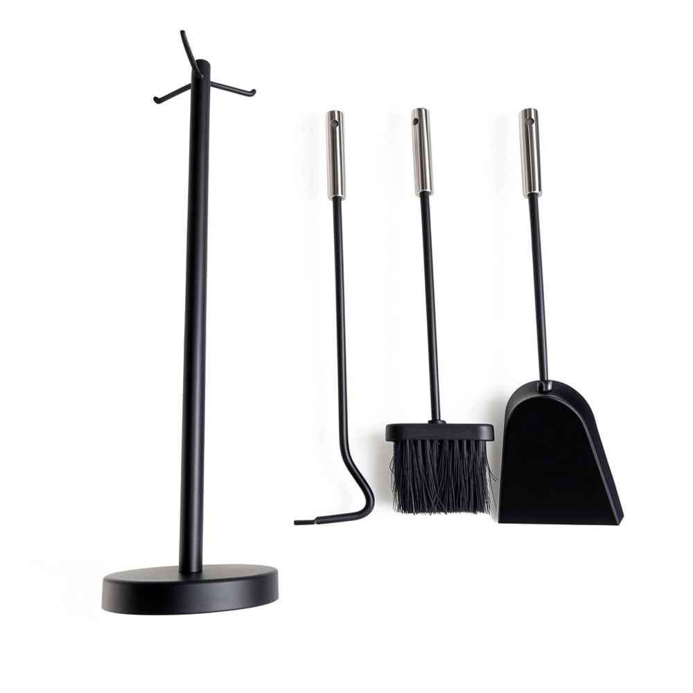 Купите набор каминный EVEREST K239-XB. Это готовый комплект инструментов для камина, который включает щетку, кочергу и совок.
