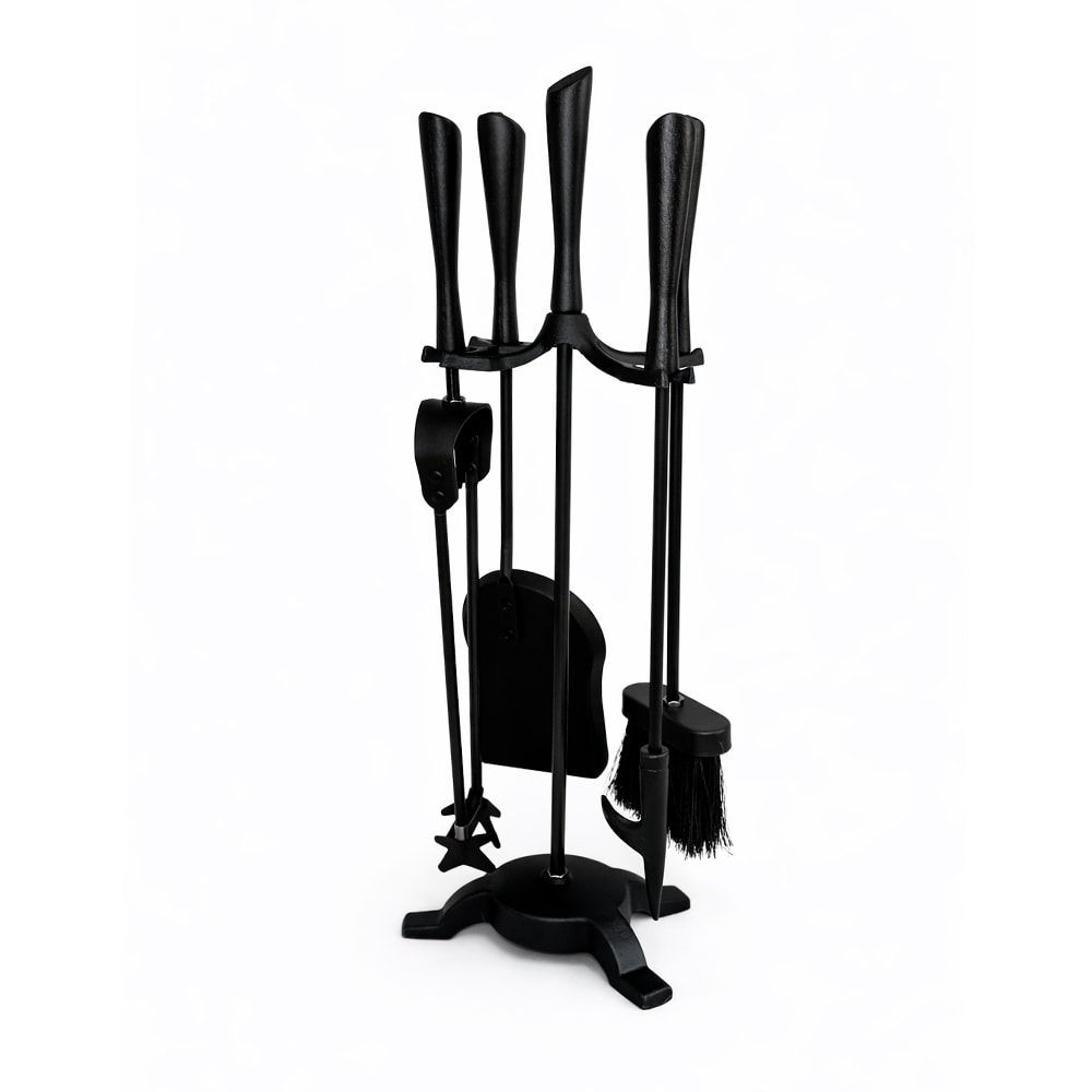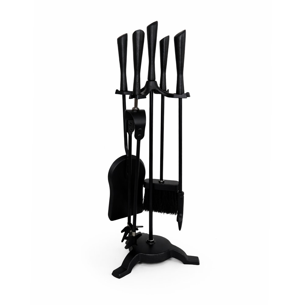 Этот набор для камина изготовлен из стали. Цвет - черный. Инструменты из жаропрочной стали выдерживают контакт с огнем.
