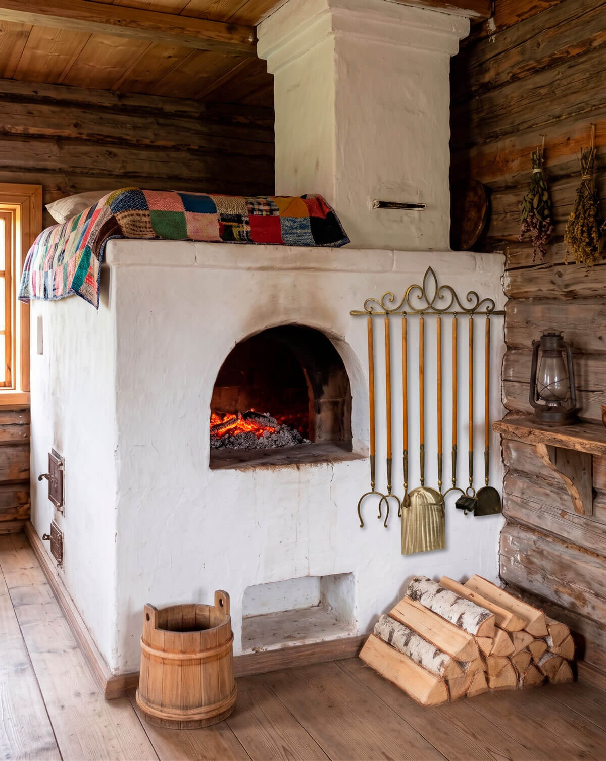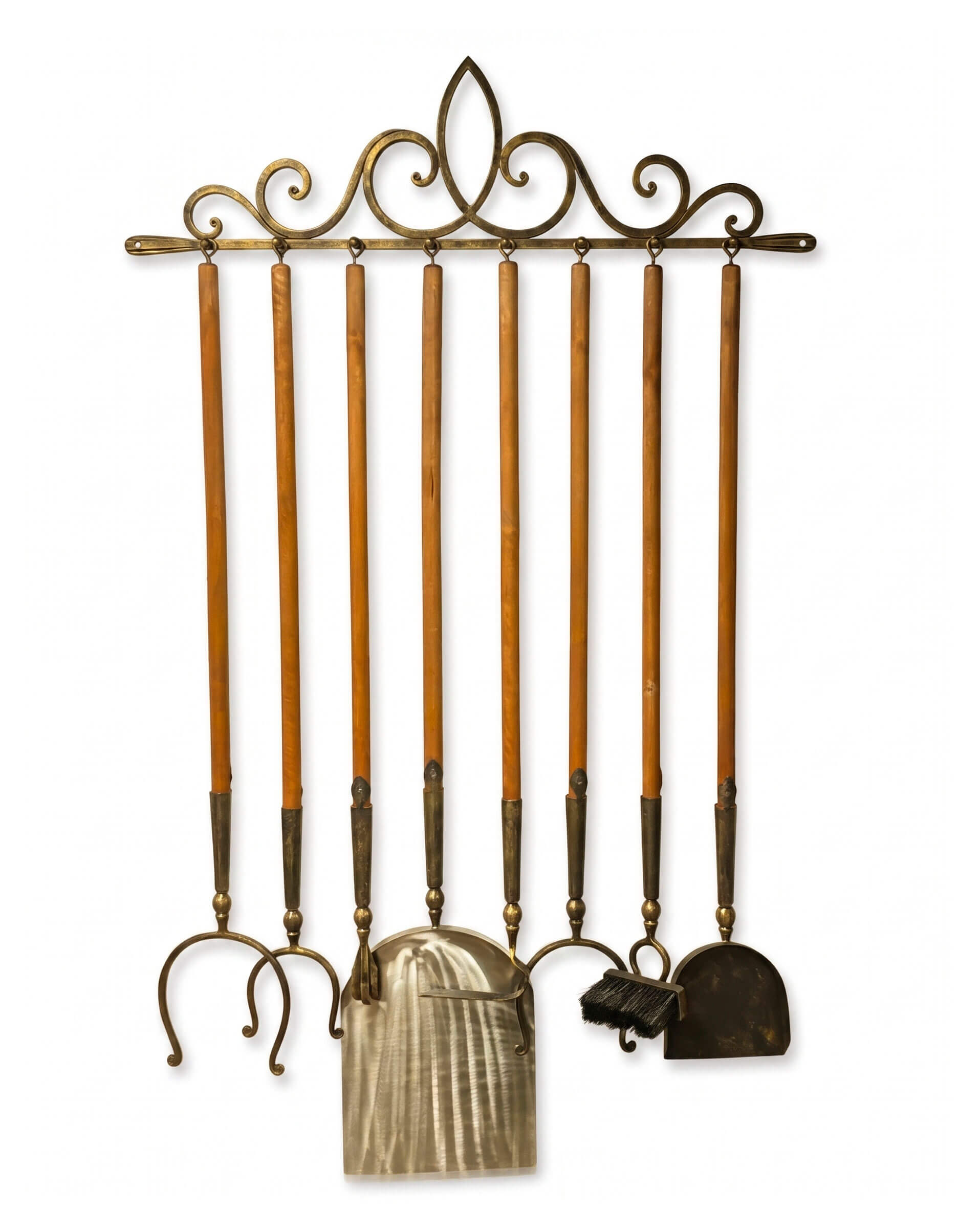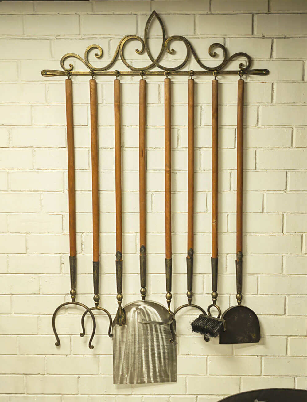 Подвесной набор аксессуаров для русской печи, на кованной полке. В комплекте девять предметов: