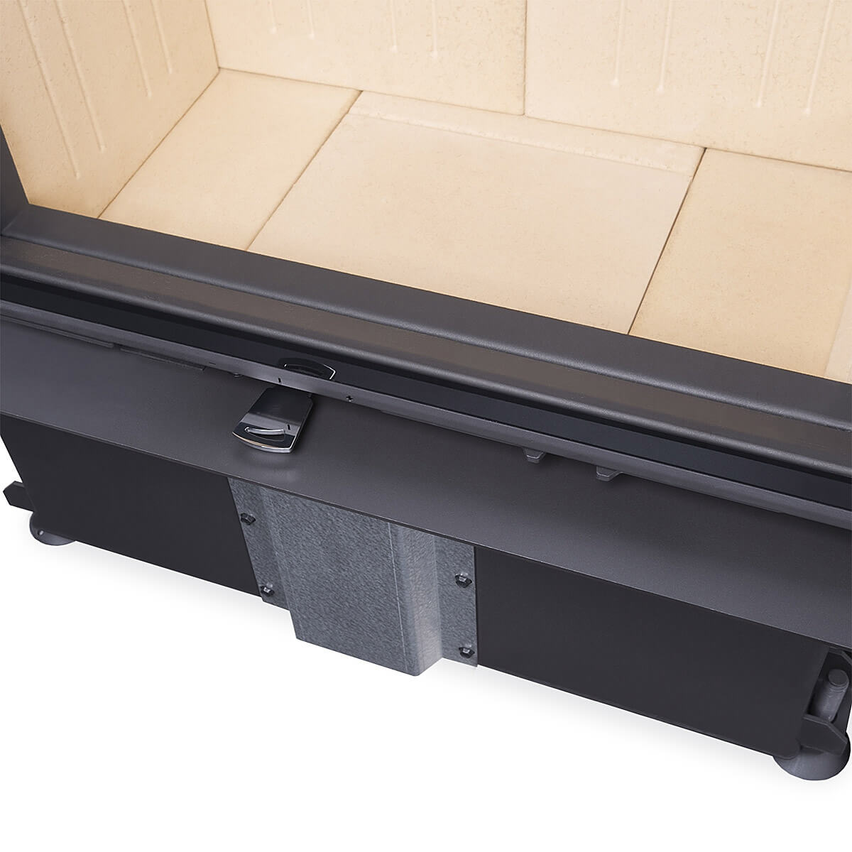 Простое, бесшумное и точное управление подъемной дверцей топки обеспечивается современной системой БЕСШУМНОГО ПОДЪЕМА. Подъемная дверца управляется с помощью съемной ручки, которую при желании можно заменить на стационарную.