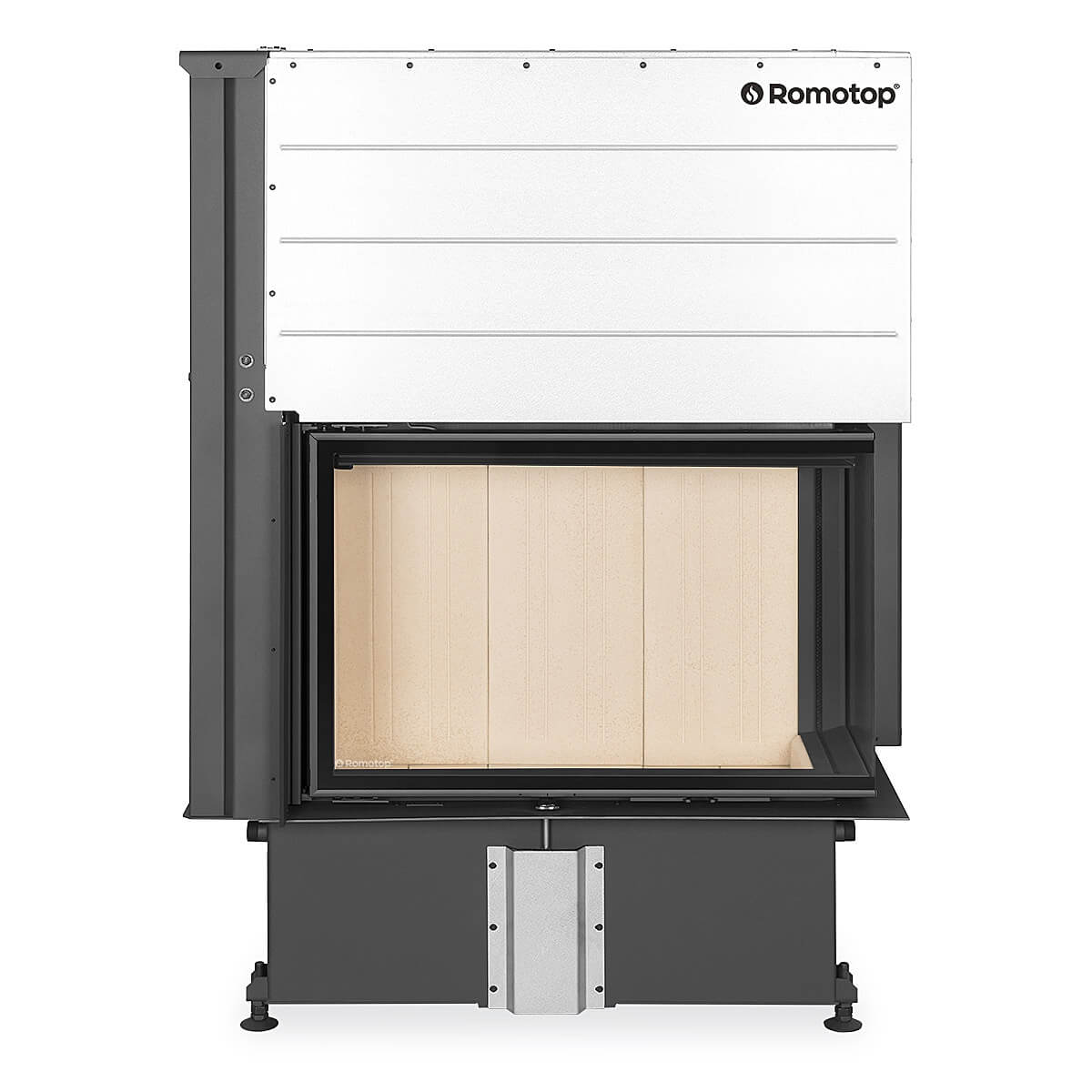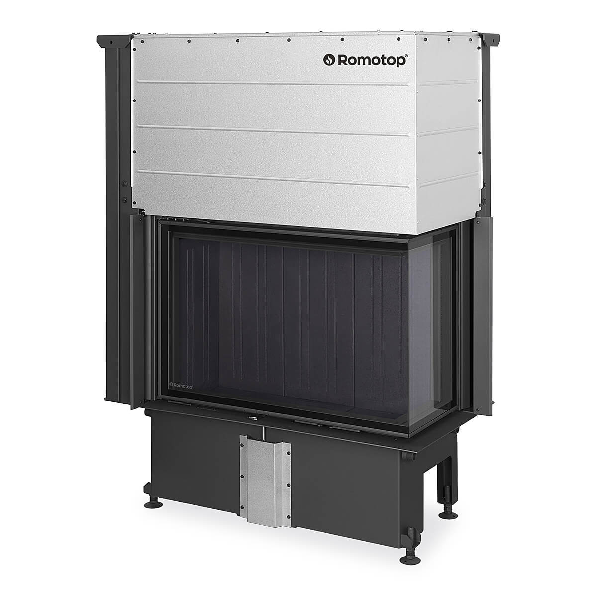 Угловая каминная топкка ROMOTOP IMPRESSION R 2G L 83.60.34.21 (IR(L)2LH 21) с правым и передним стеклом, с подъемной дверцей, футерована шамотом черного цвета.