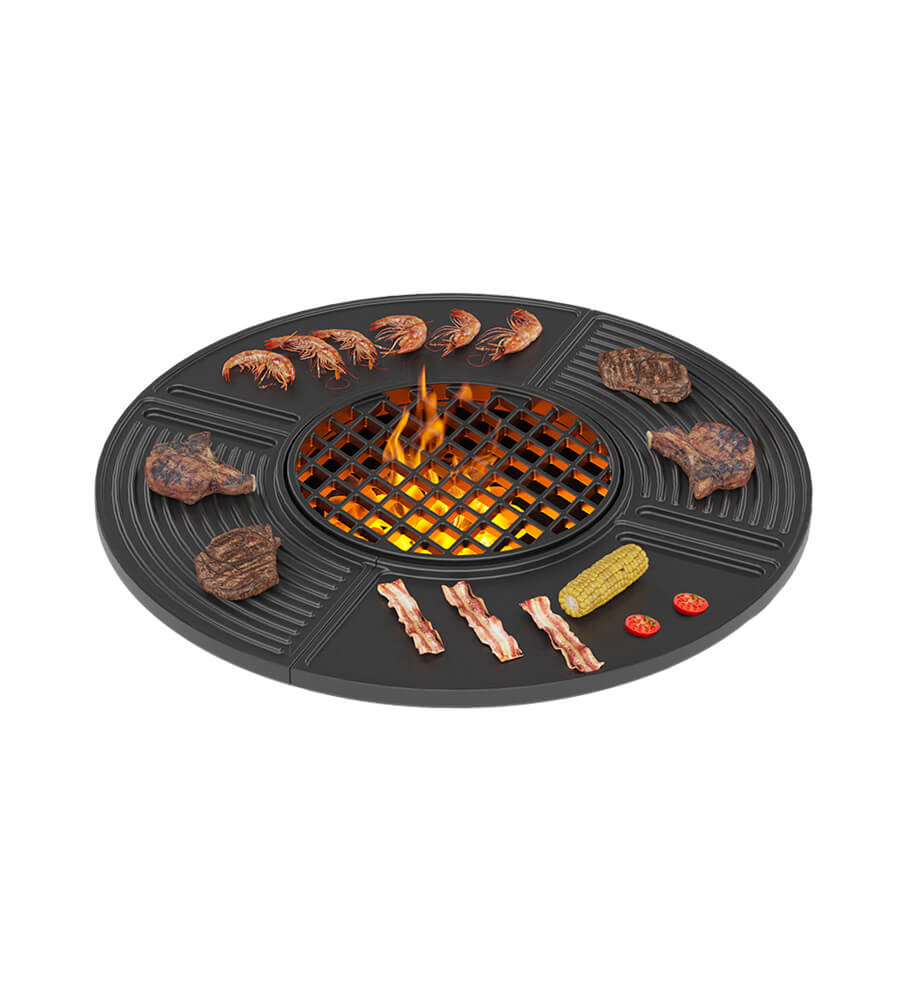В середине плиты размещина чугунная решётка Везувий Стейк диаметром 314 мм. Эта решётка предназначена для готовки мяса и овощей с красивым диагональным рисунком. Дополнительные желоба, размещённые по середине каждого сектора плиты, предназначены для сбора излишнего жира или соков, выделяющихся при готовке продуктов. Наличие этих элементов в конструкции уменьшает количество жира на рабочей поверхности, позволяя готовить более полезную пищу.