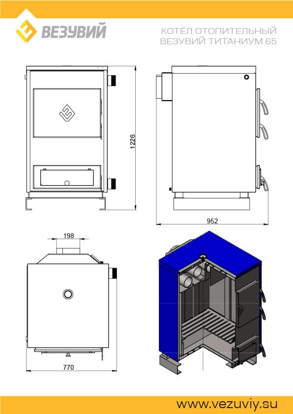 Твердотопливный отопительный котёл Везувий "Титаниум-65" мощностью 65 кВт, для отопления зданий и сооружений площадью до 650м2.