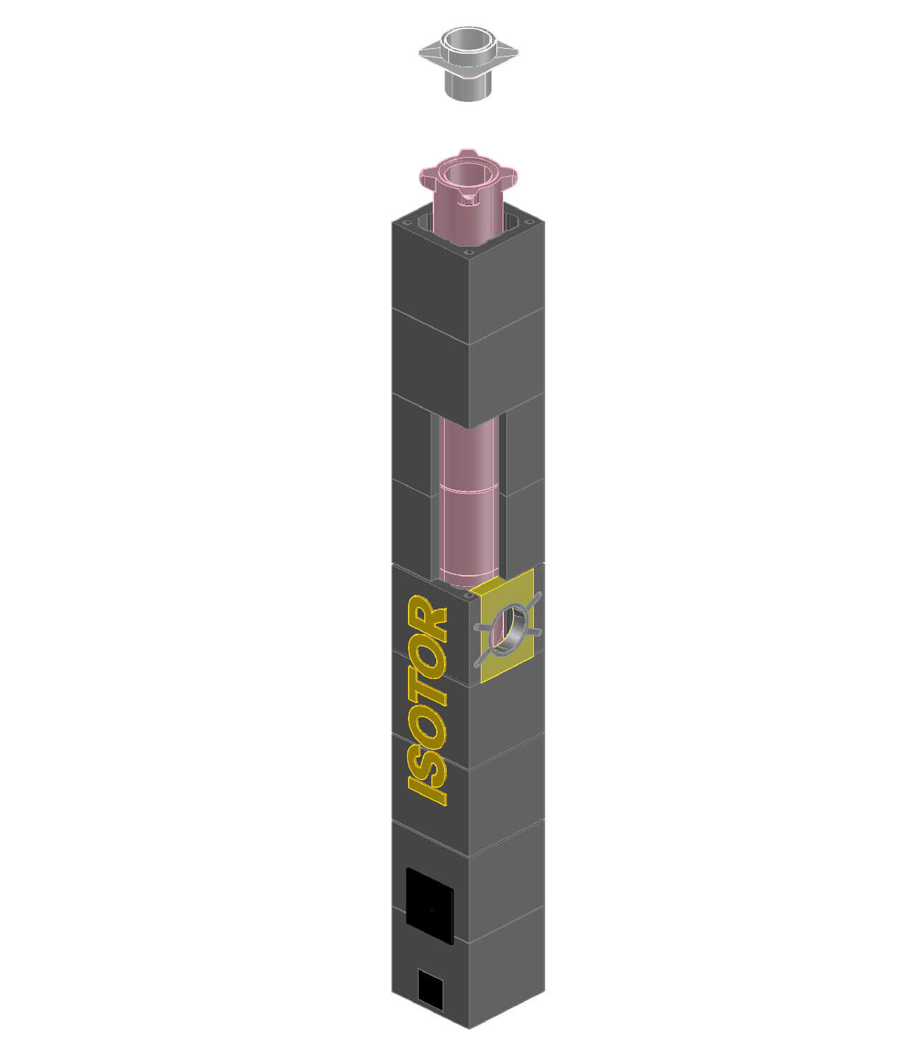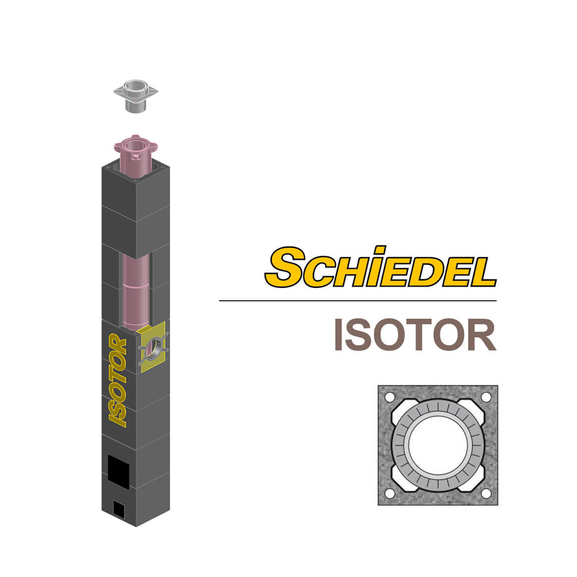 Верхний комплект дымохода Schiedel ISOTOR «По месту» - применяется для индивидуального оформления верхней части дымоходной, без зонта, при необходимости зонт заказывается отдельно. Данное решение можно применять как для одного дымового канала, так и для нескольких выходящих в одной точке стволов.