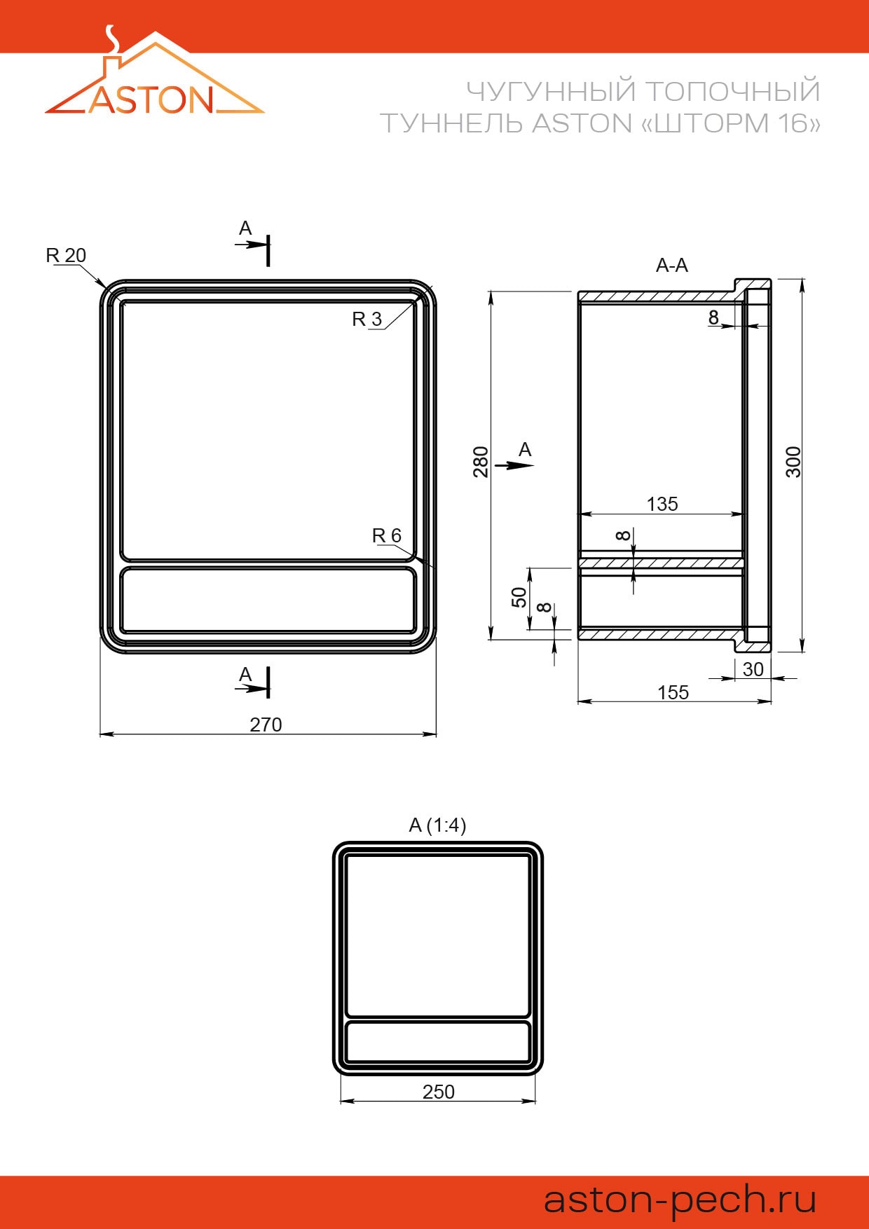 Чугунный топочный туннель ASTON «Шторм 16»