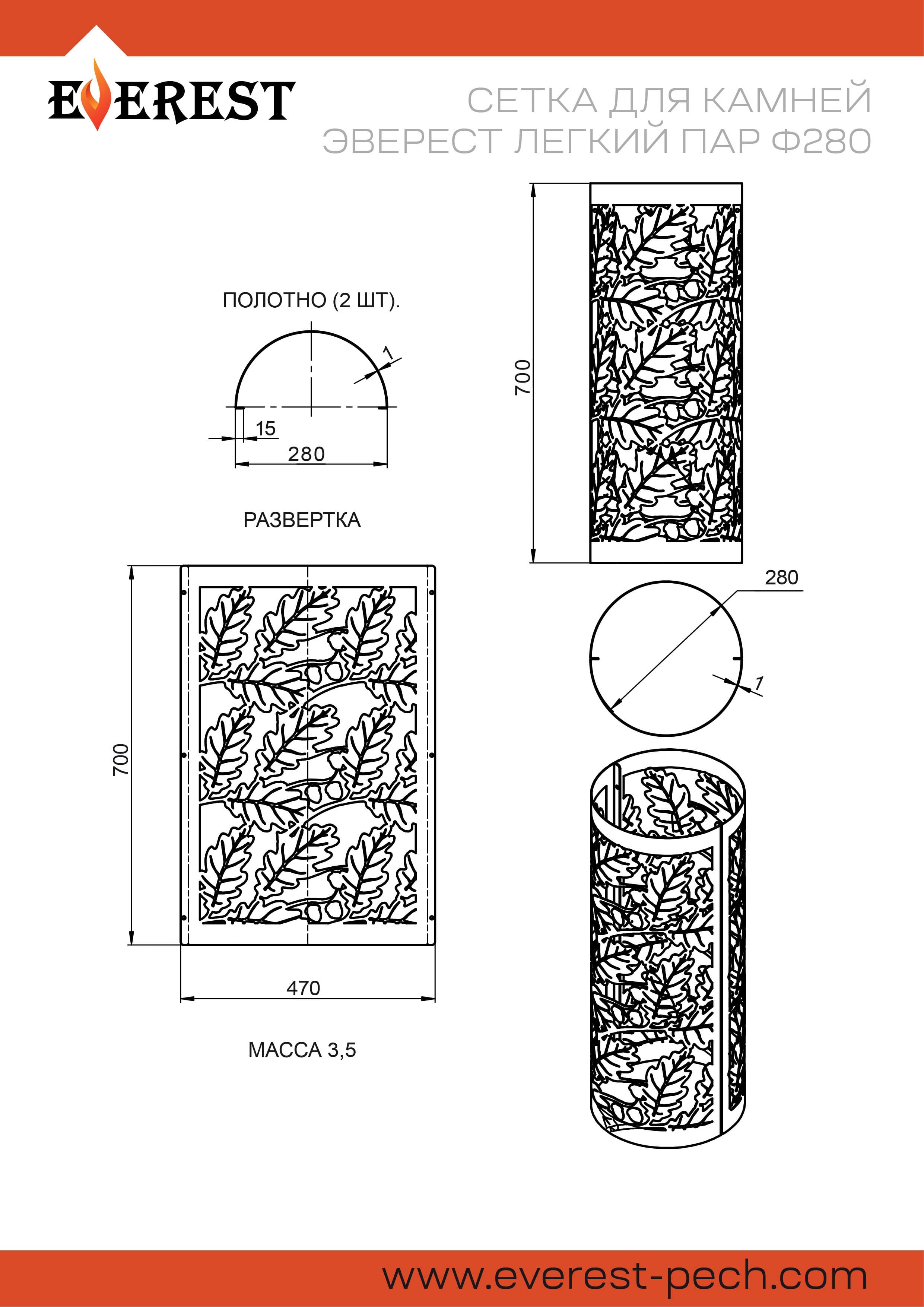 Сетка Эверест Легкий пар Ø 280 - для дополнительного размещения камней на трубе банной печи, эффективного и экономичного использования тепла банной печи.