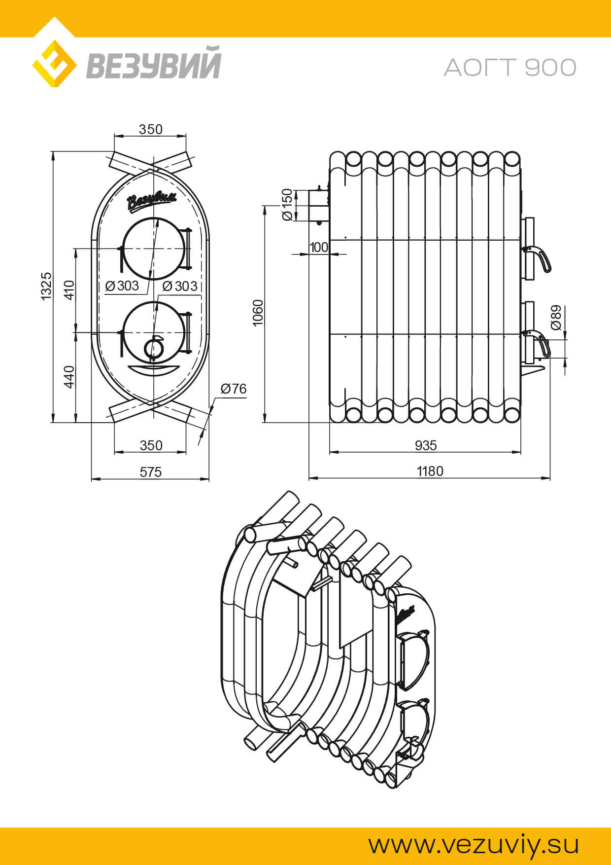 Печь отопительная ВЕЗУВИЙ АОГТ 900 предназначена для обогрева помещений производственного и бытового назначения (гаражей, СТО, мастерских, теплиц и т.д.). Печь рассчитана на обогрев помещений объёмом до 900 кубических метров. АОГТ представляет собой тепловой агрегат конвекционного типа с КПД 75-80% и системой длительного горения топлива. Сварная конструкция из особо прочной котловой стали 09Г2С, рассчитана на долговременную эксплуатацию.