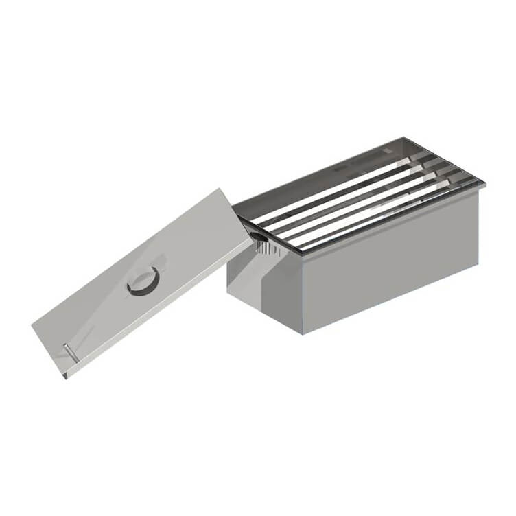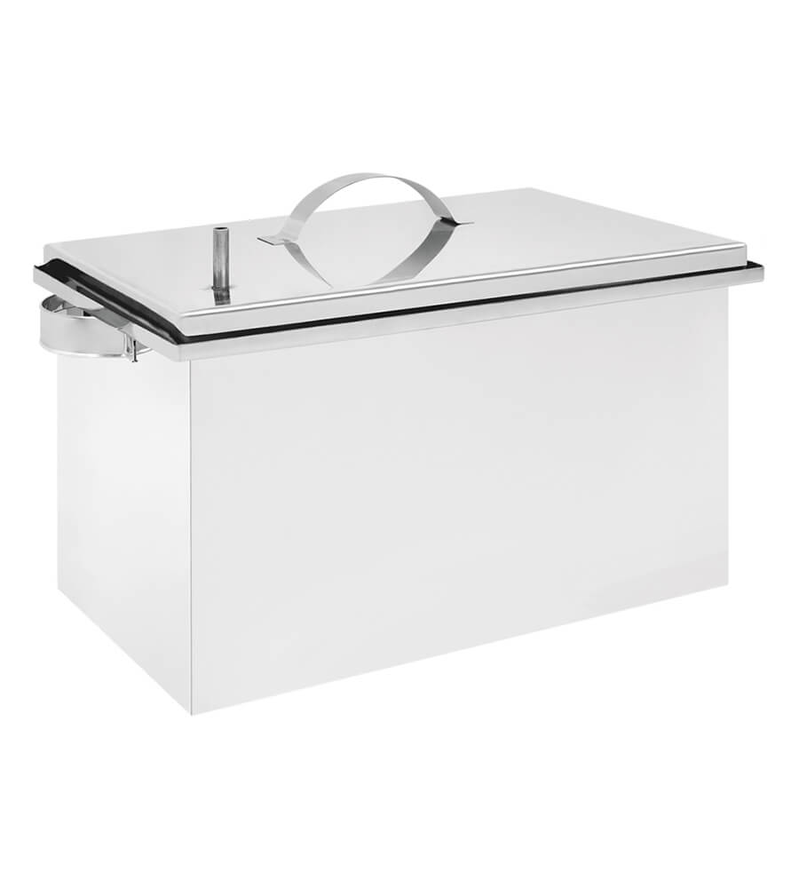 Коптильня изготовлена из нержавеющей стали толщиной 1мм. Имеет 2 уровня для продуктов, поддон для сбора жира и так называемый «гидрозатвор» в верхней части благодаря этому, создается давление и копчение происходит более быстро и качественно.