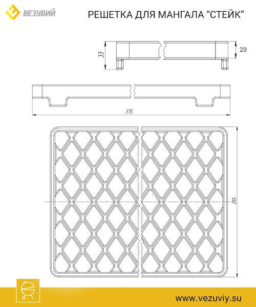 На решетке для мангала «Стейк» вы сможете готовить все виды мяса, рыбы и птицы. Решетка изготовлена из чугуна. Одним из преимуществ чугунных решеток является неограниченный срок их службы. Теплопроводность чугуна позволяет равномерно прожаривать продукты, сохраняя их природную сочность. У решетки есть ножки для подачи на стол.