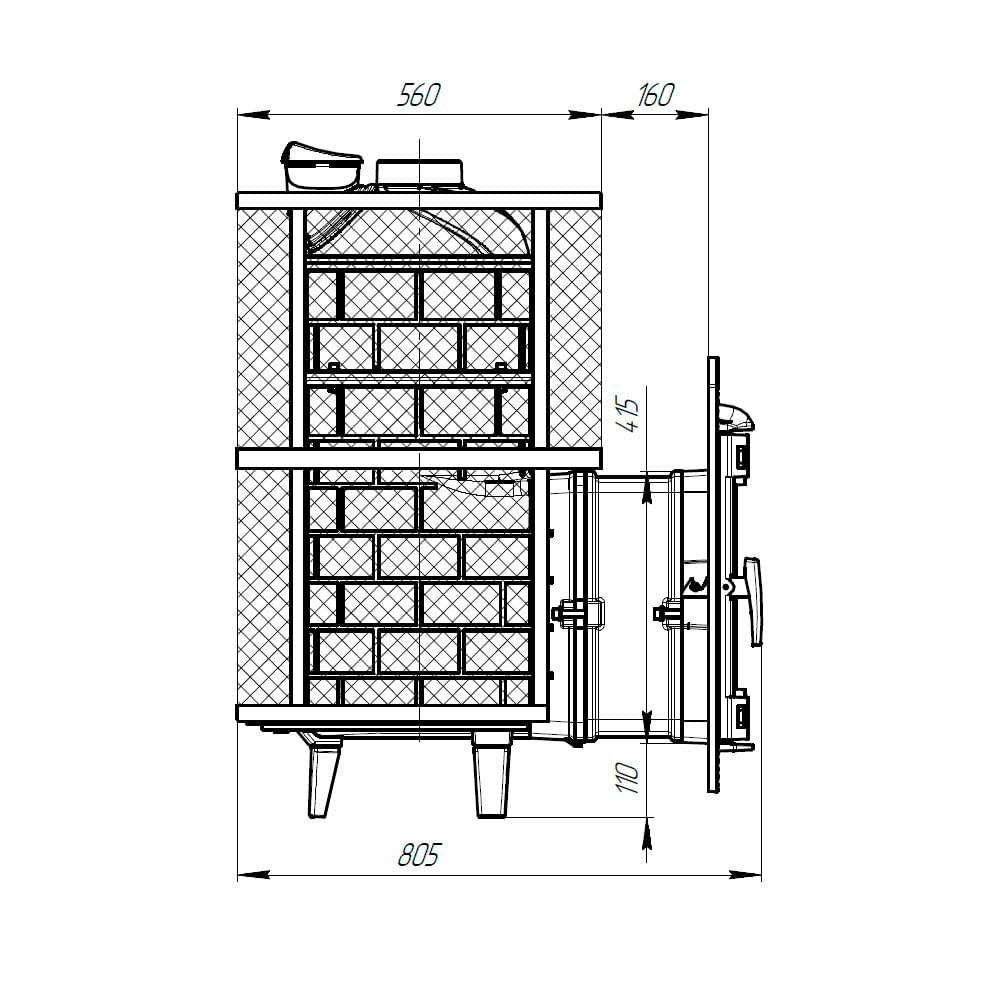 - Масса печи - 203 кг