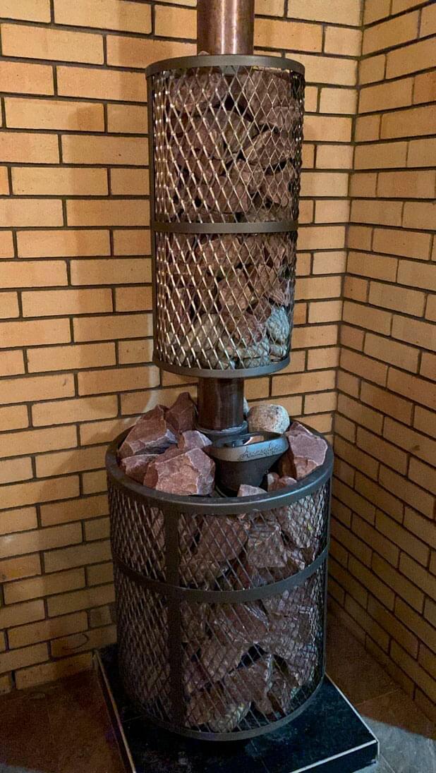 Модель оснащена каменкой с усиленным дном и встроенными пирамидками из нержавеющей стали AISI 420, которая заменяет 5 стандартных упаковок пирамидок! Кожух печи изготовлен в виде сетки из нержавеющей стали и полностью заполняется природными камнями, обеспечивая высокую динамику нагрева парильного помещения.
