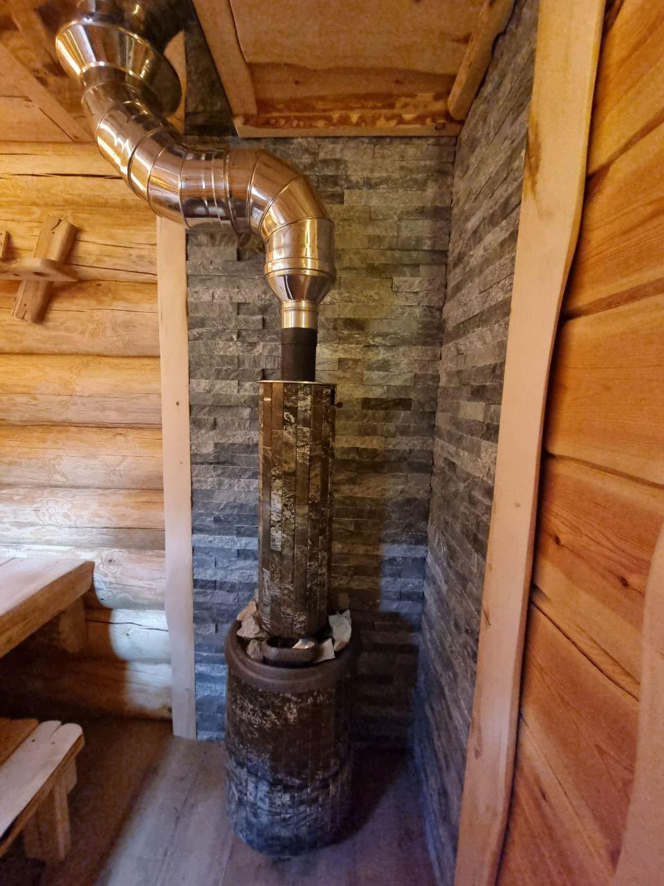 - Облицовка из натурального камня ламели «Пироксенит» повышает теплоемкость банной печи и обеспечивает мягкое комфортное тепло в парильном помещении бани.