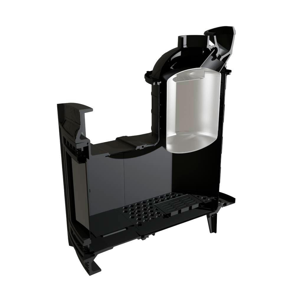 - Цельнолитая конструкция топки, без швов гарантирует превосходную прочность.