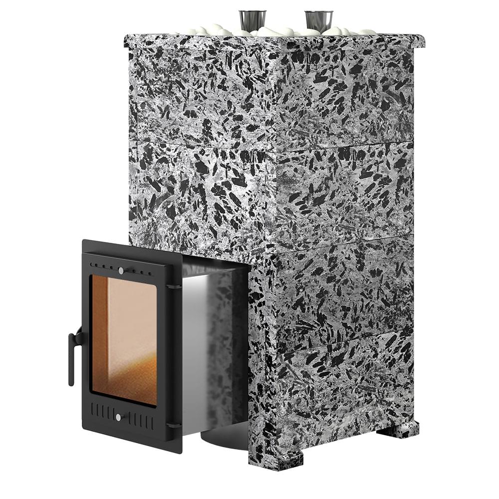 Конструкция печи включает в себя закрытую каменку из нержавейки марки AISI-430 толщиной 4 мм, расположенную в верхней части топки. Каменка размещена прямо на пути пламени и дымовых газов, что позволяет нагреть камни до температур свыше 600°C.