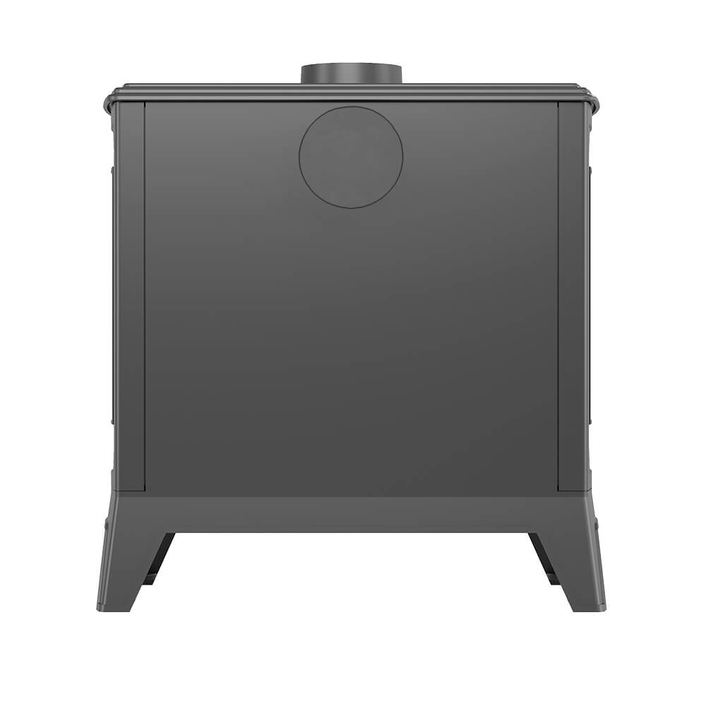 Печь-камин имеет пламегаситель изготовлен из жаростойкого чугуна (ГОСТ 1412-85). Топка печи-камина усилена чугунными вставками с системой трёхуровневый вторичного дожига. С помощью этой функции по каналам подачи вторичного воздуха поступает воздух, который нагревается при прохождении между топочной камерой и стенками корпуса. Далее нагретый воздух через дефлектор поступает в топку, перемешивается с газами - продуктами горения, чем вызывает повторное возгорание.