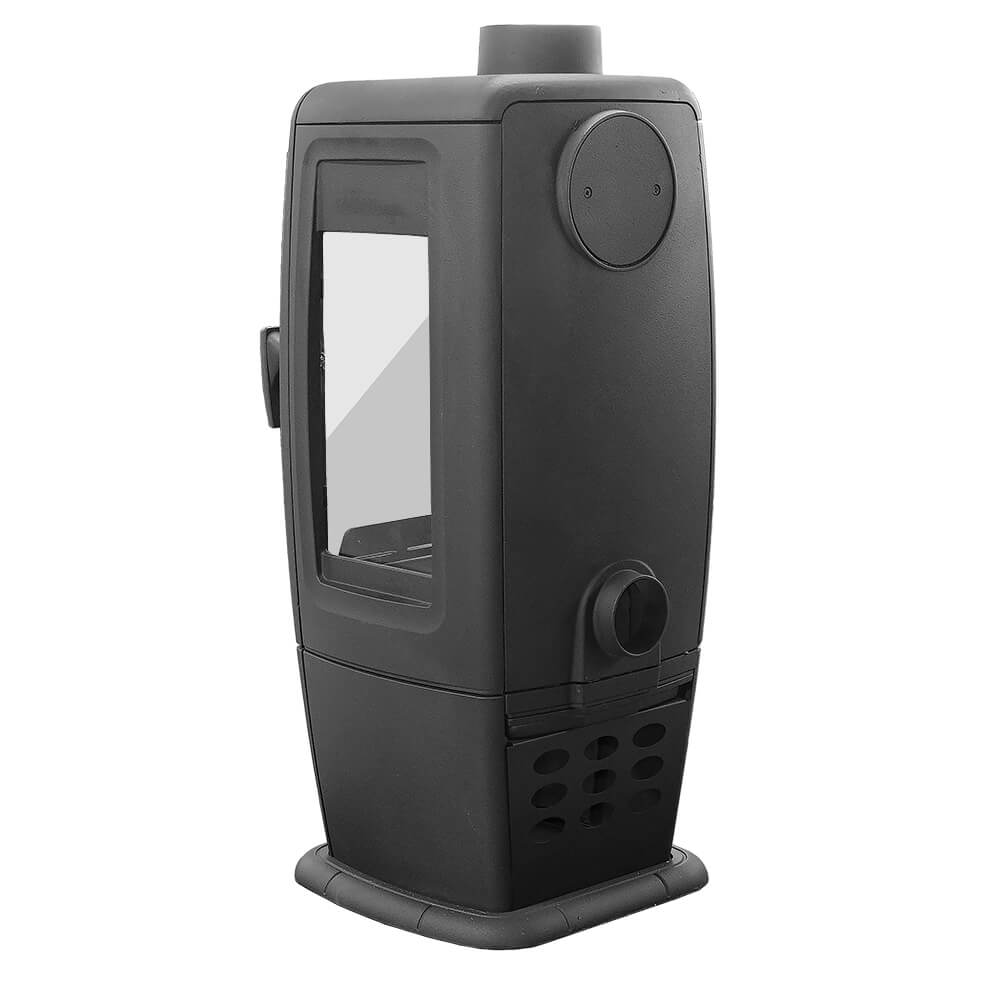 Патрубок дымохода Ø 150мм – универсальный. На задней стенке расположен приточный патрубок диаметром 93мм, который дает возможность подвести приток воздуха вне комнат.