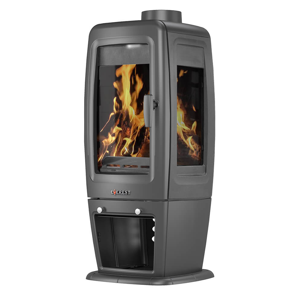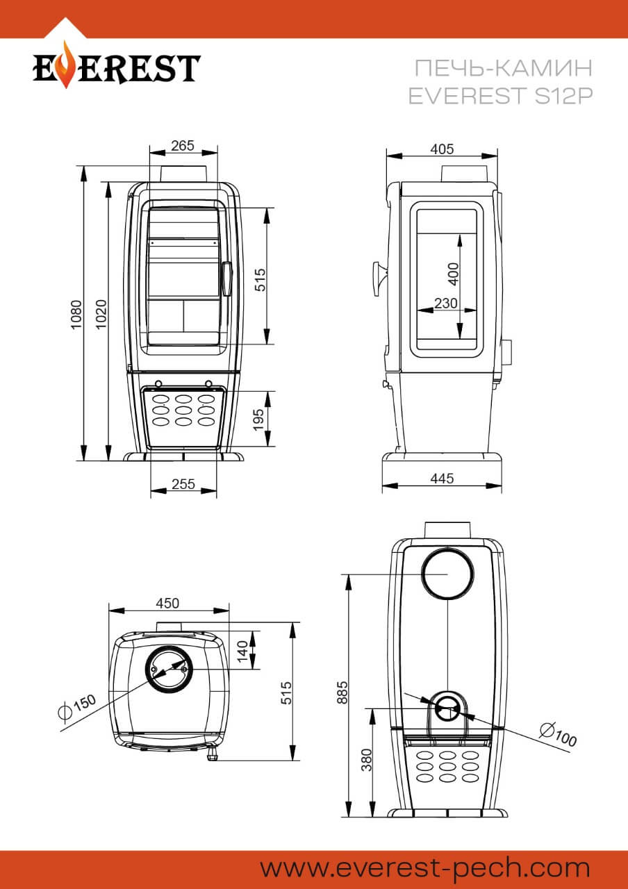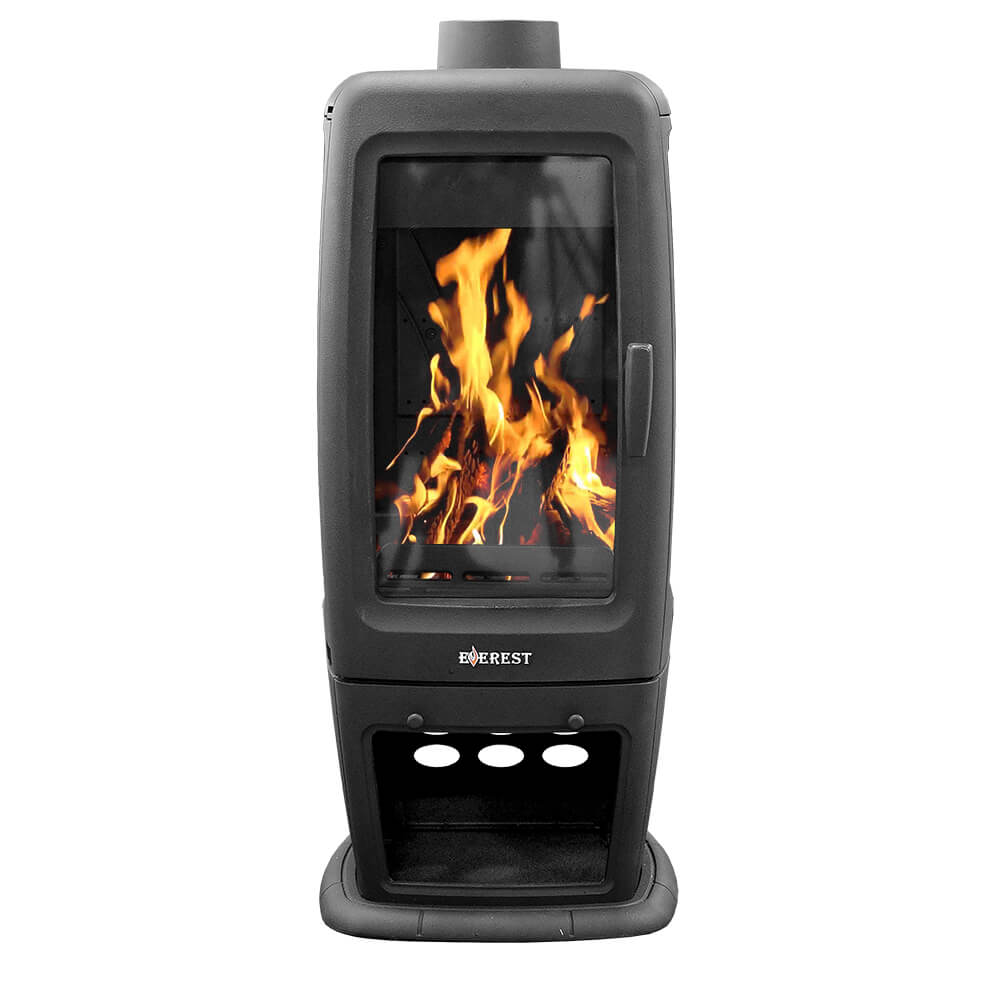 Печь-камин EVEREST S12Р изготовлена из качественного жаростойкого чугуна с толщиной стенок 6-8мм. Вес печи составляет 182 кг. Модель рассчитана на обогрев помещений объёмом до 240м³. Особенность печи камина EVEREST S12Р - в наличии боковых стекол.