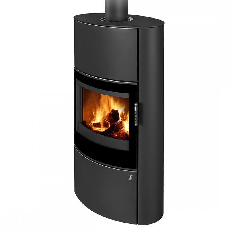 Каминная печь «SINEOS H SE» на фотографии имеет металлическую облицовку.