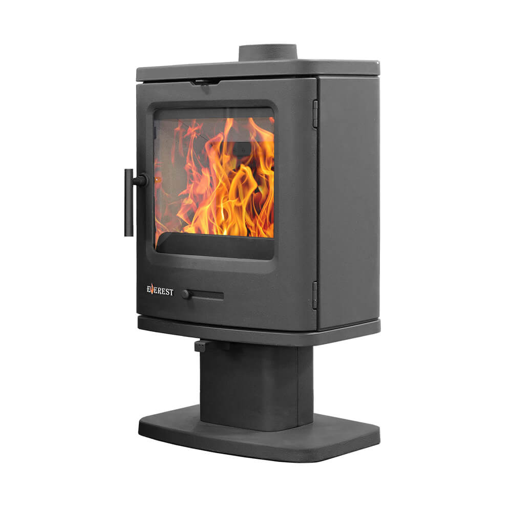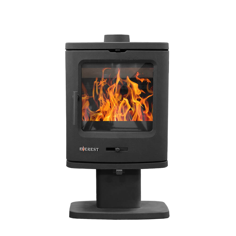 Печь-камин EVEREST B7 – чугунная отопительная печь на ноге пьедестале, печь длительного горения и с двойным дожигом и самоочисткой стекла, мощность 7кВт, отапливает до 140м3.