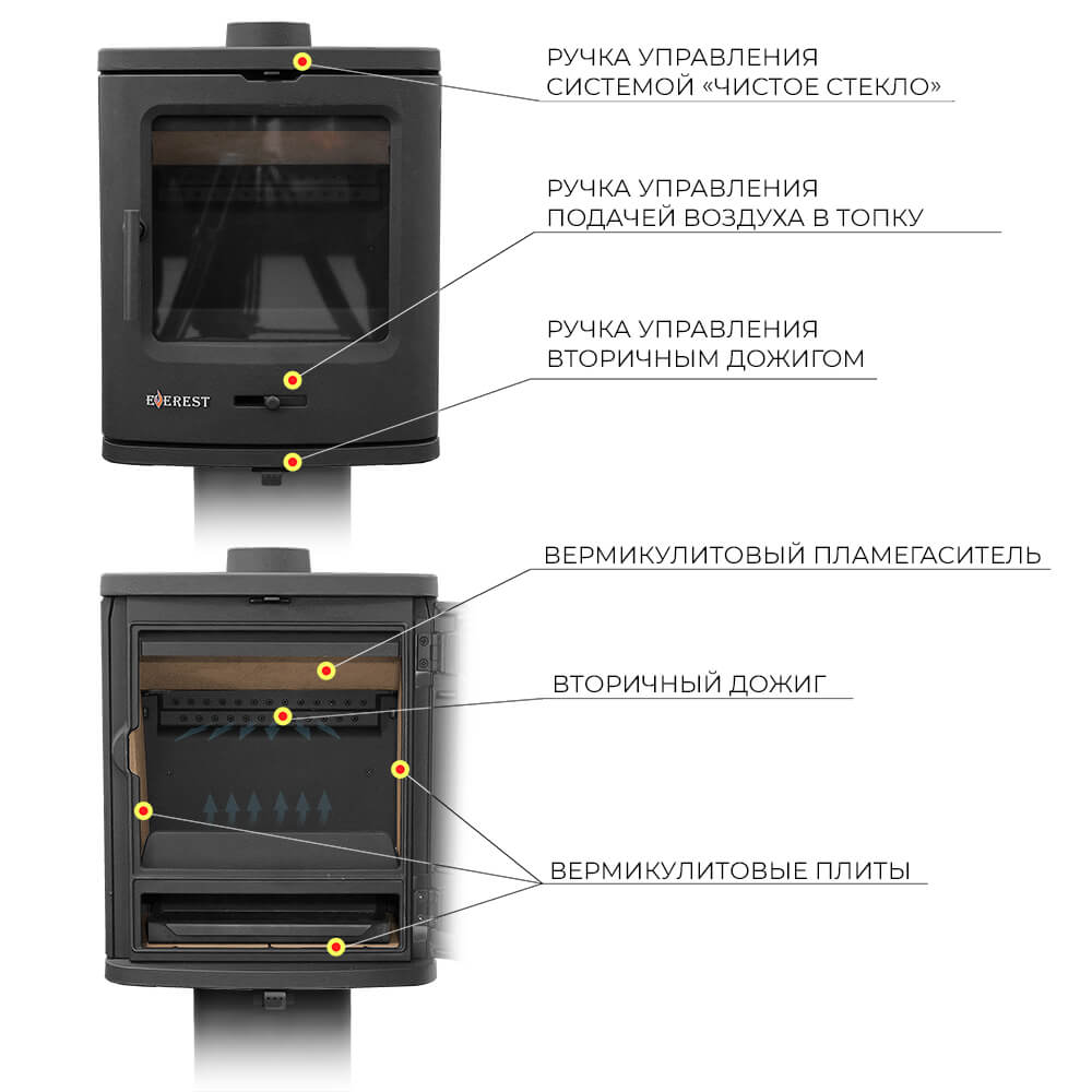 Обзор: Чугунные печи-камины Everest B7, B7K, B7MP