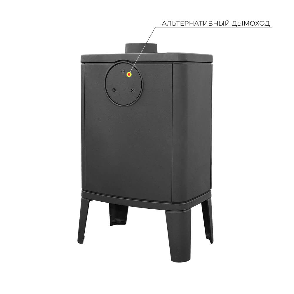 Патрубок дымохода Ø 120 мм – универсальный, со сменным положением. Он может быть установлен сверху или сзади в зависимости от размещения печи в помещении