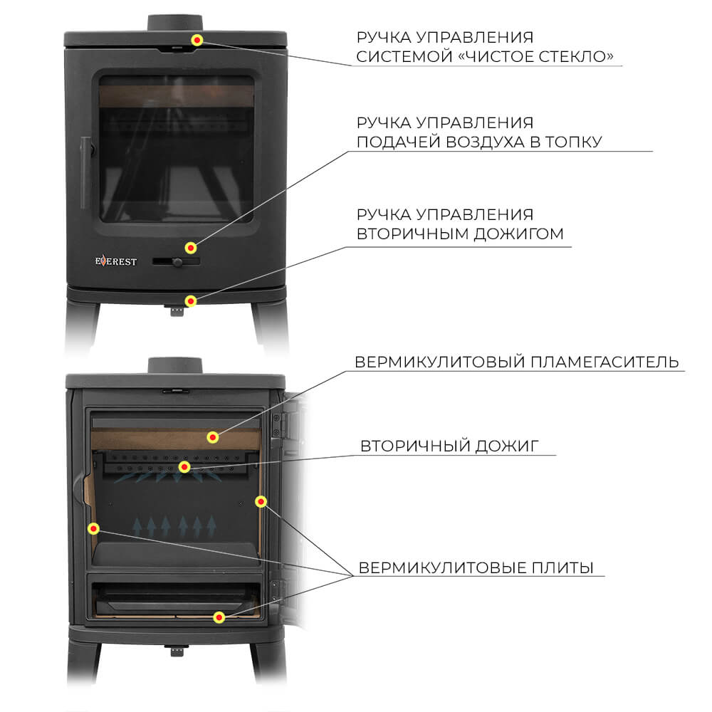 Обзор: Чугунные печи-камины Everest B7, B7K, B7MP