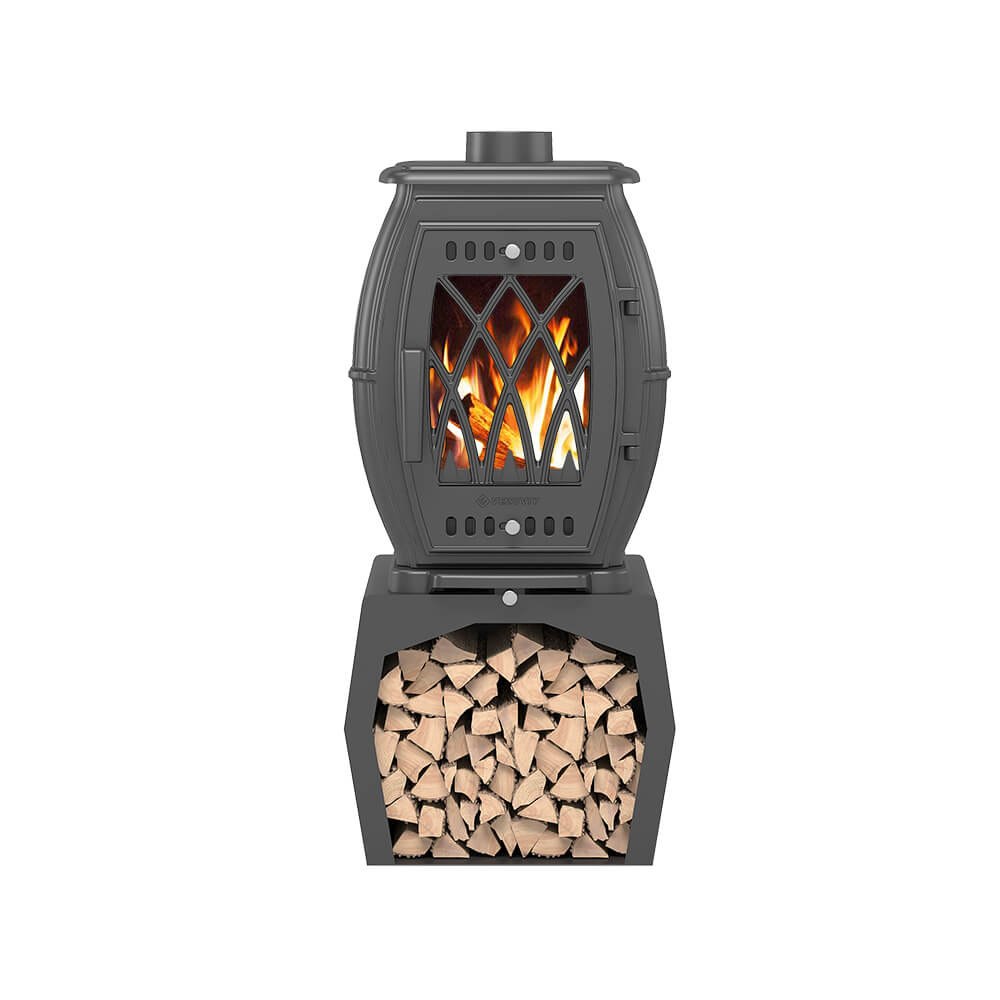 Модифиукация печь-камин Везувий BX-09М "Антрацит" изготовлена из качественного жаростойкого чугуна с толщиной стенок 6-8 мм. Печь уставновлена на базе - дровнике. Модель рассчитана на обогрев помещений объёмом до 180 м³.
