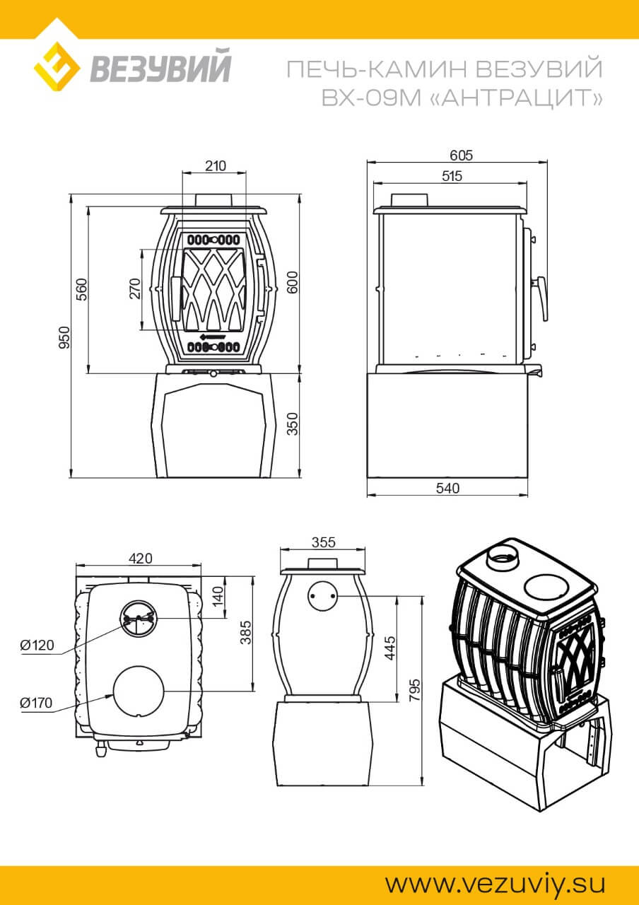 Обзор: Печь-камин Везувий BX-09М "Антрацит" с дровником