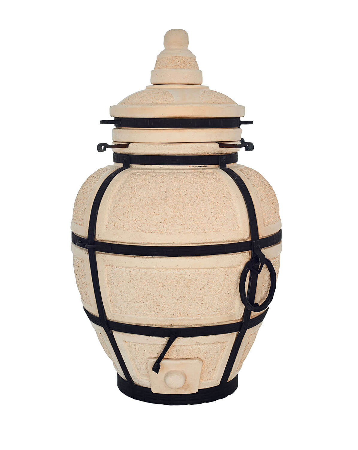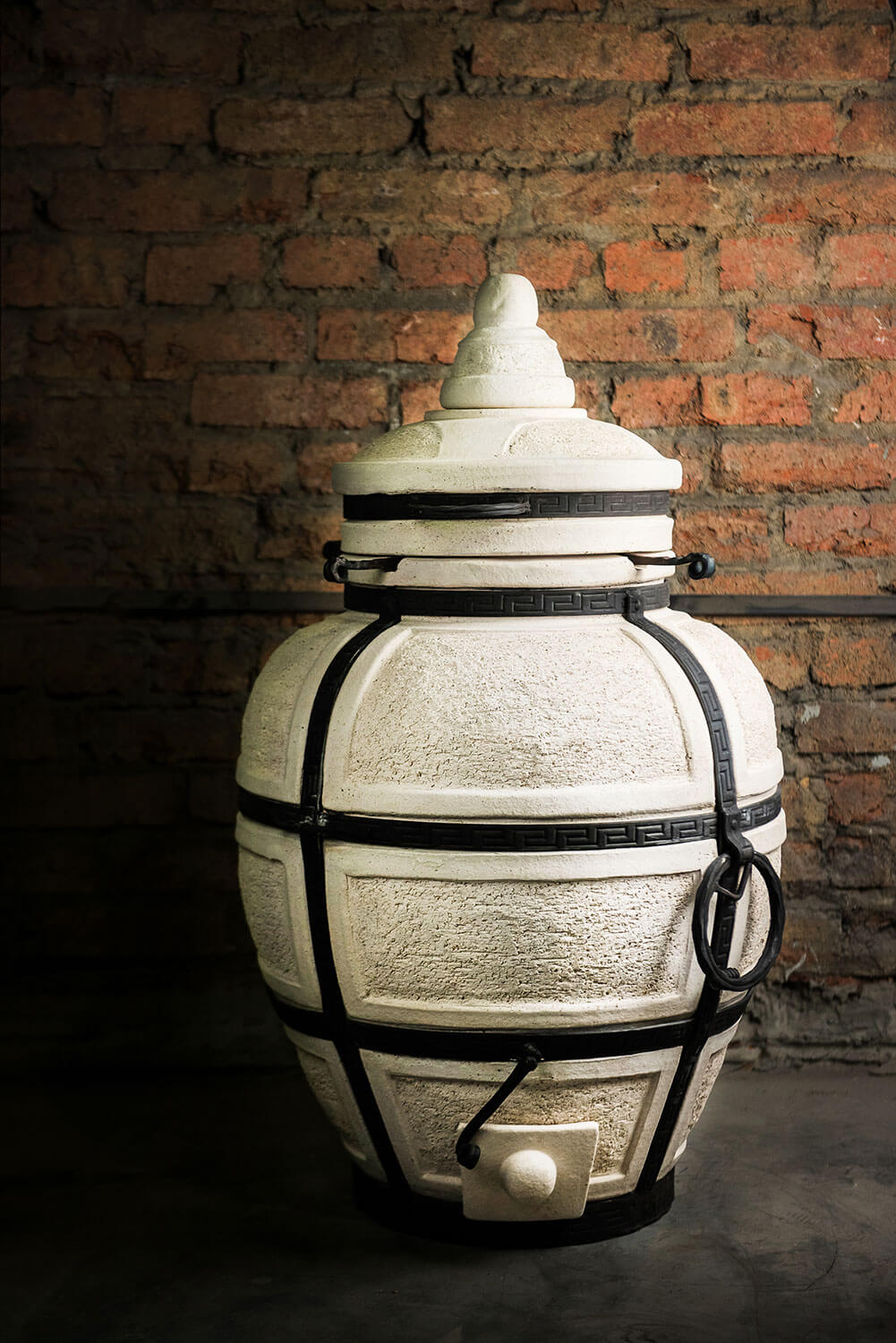 Модель отличает строгий внешний вид без особых излишеств. Но стильные, прочные кованые конструкции присутствуют и мощно опоясывают корпус. Сарматы – кочевой народ. Этот Тандыр Большой все еще ищет пристанища. Он вполне сможет найти его у вас. На даче, в загородном доме, в маленьком летнем кафе или на заднем дворе большого ресторана. Подойдет везде, поселится надолго и не разочарует.