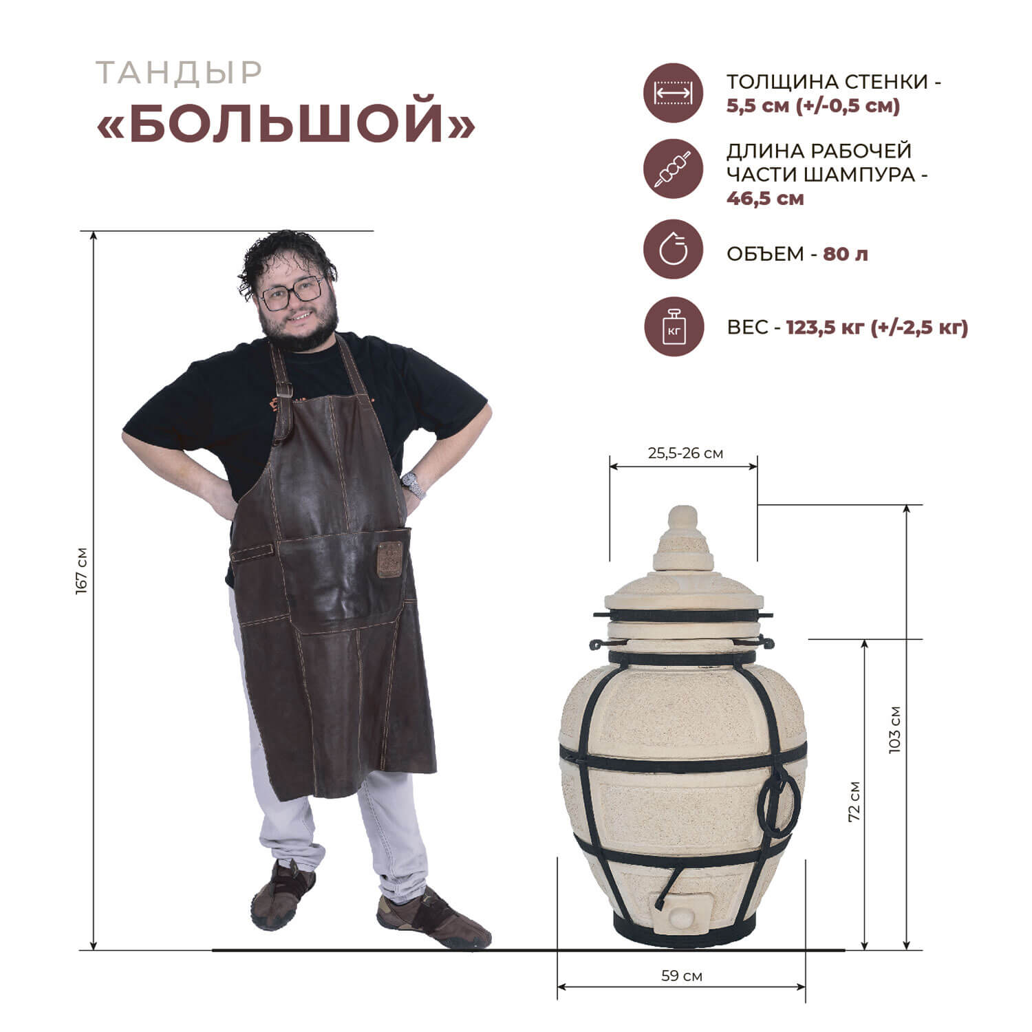 Сын Скифа - именно это значение в переводе имеет слово «Сармат». По мнению греческого историка Геродота, он появился на свет в союзе скифа и амазонки. Мать по жестокому закону своего воинственного народа навсегда отослала ребенка к отцу. Теперь он вырос и стал самостоятельным и большим. Тандыр Большой строен, красив и хорош собой. Основные характеристики: мощный торс, боевой вес, превышающий центнер. Больше подходит в качестве стационарного места готовки. Шампуров – достаточное количество для большой компании. К тому же их можно использовать одновременно. Толщина стенок – способна надолго сохранить тепло и жар для многих видов блюд. Готов приготовить мясо, рыбу, хлебобулочные изделия. Запечь фрукты, овощи или грибы. Этот тандыр – классический вариант печки, способной создать много вкусных вещей.