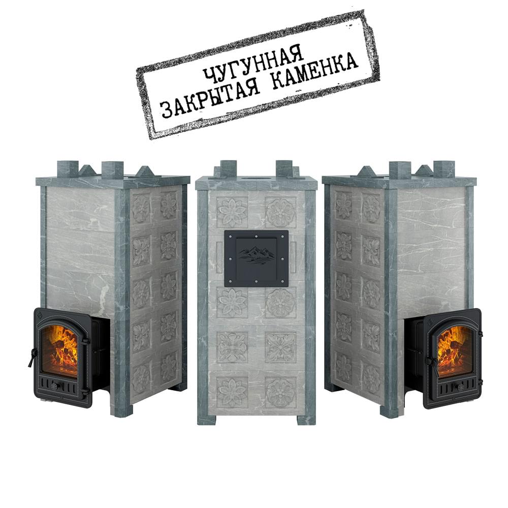 Закрытая каменка из чугуна толщиной 10 миллиметров сверху и снизу имеет закруглённую конструкцию. Каменка находится на месте пламегасителя. Огонь при горении дров охватывает каменку с четырёх сторон, что ускоряет нагрев заклада. Закрытая каменка рассчитана на размещение 60 килограммов камня для бани, создаёт массивный тепловой заряд. Каменка и внешний корпус изготовлены из чугуна, крепятся друг к другу по типу «паз-гребень» с использованием термостойкого герметика.