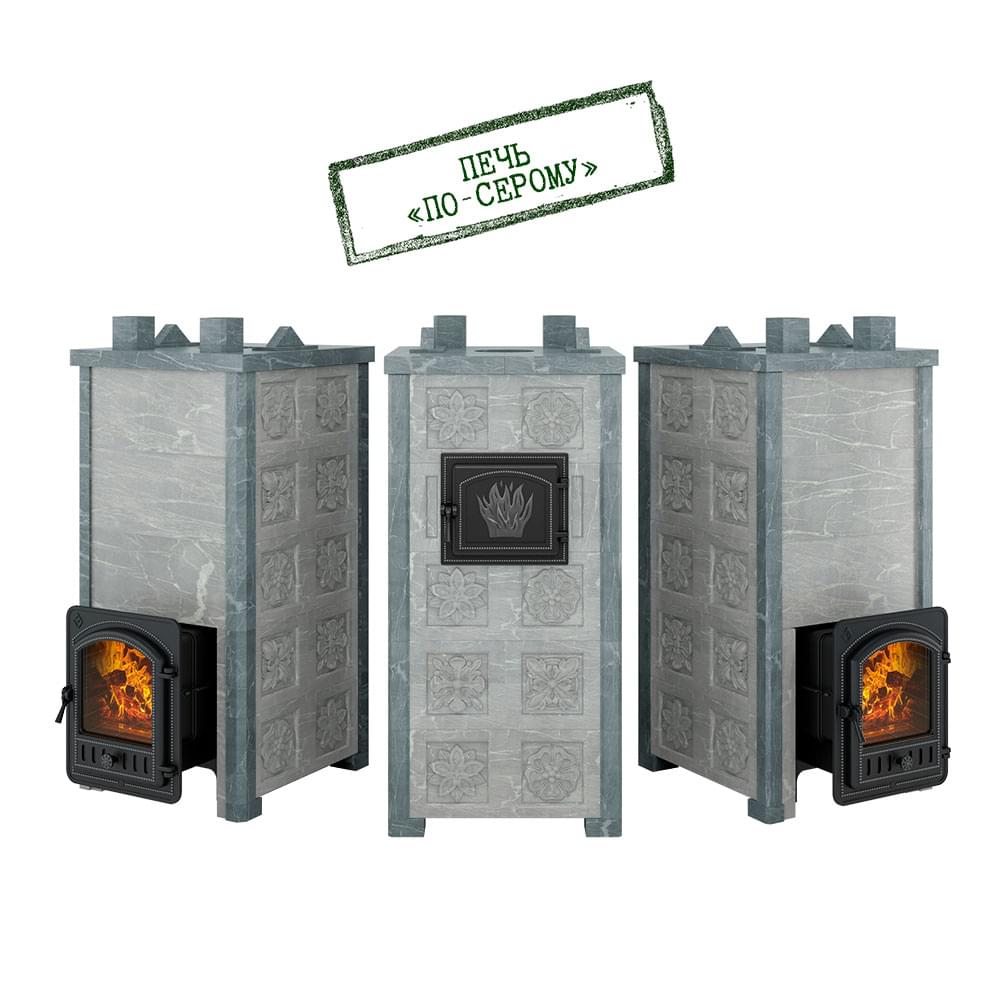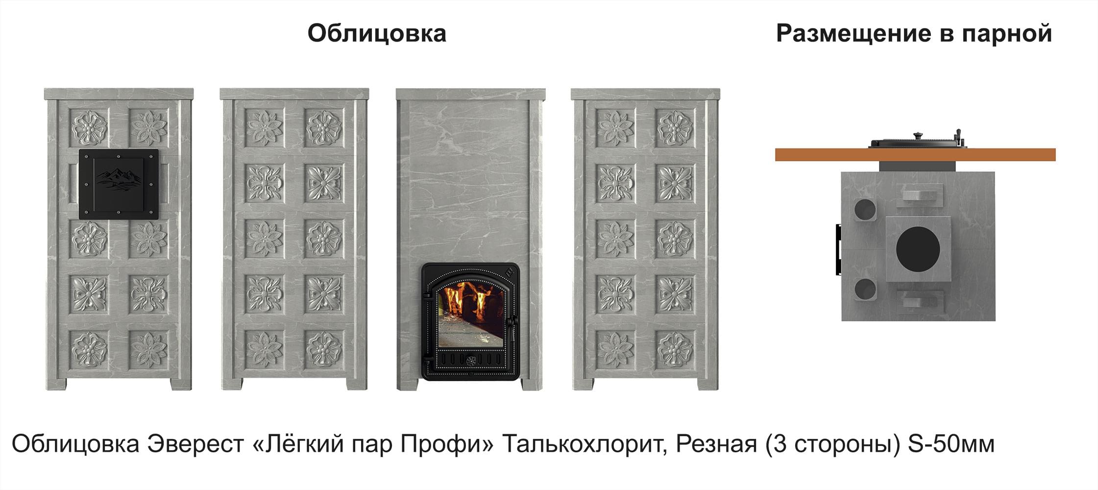 Печь Эверест "Легкий пар Профи" каменка «по-серому», Талькохлорит, S-50 мм, Резная (3 стороны)
