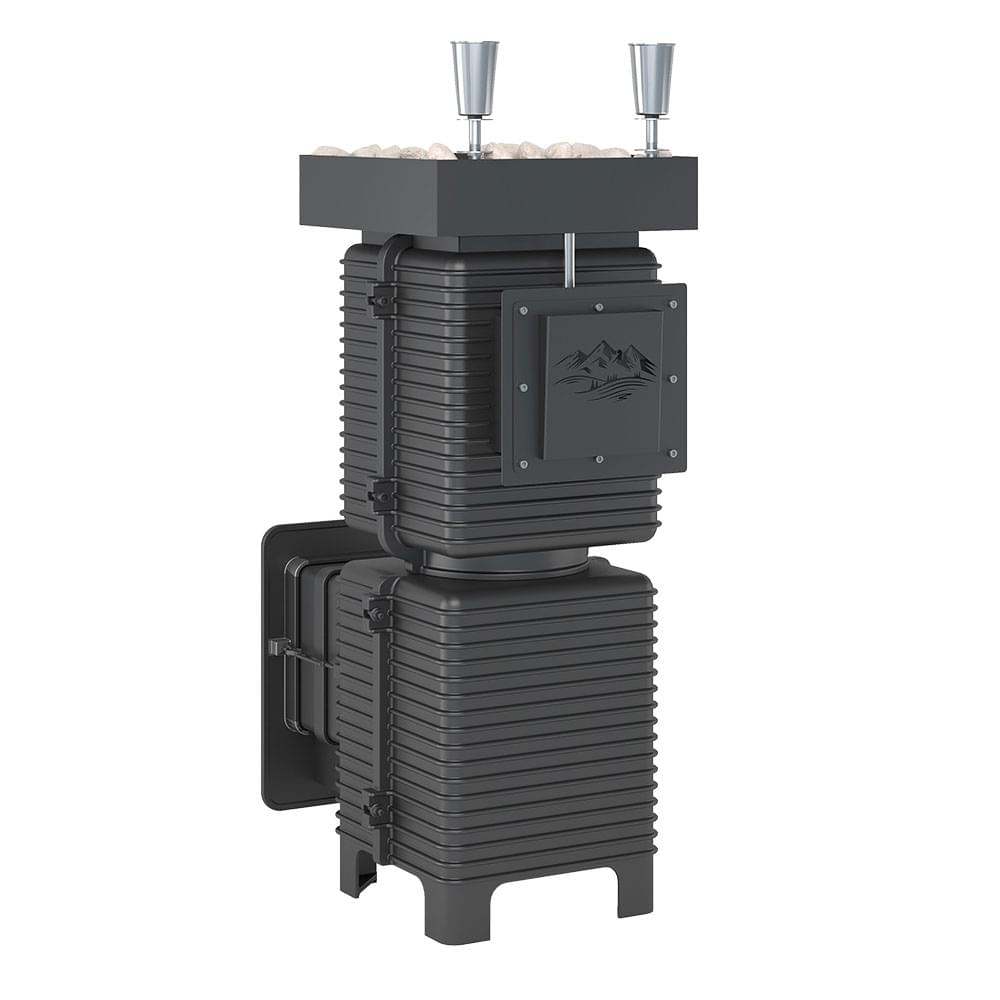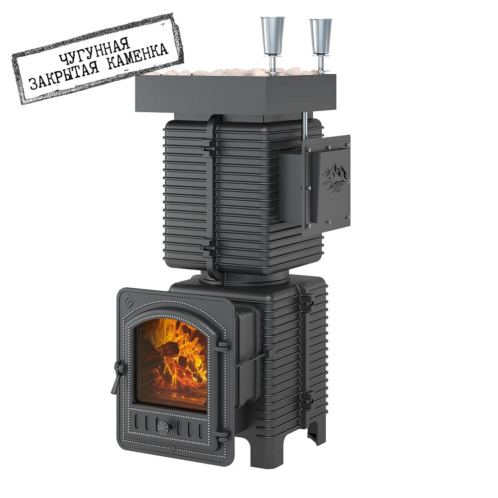 Закрытая каменка из чугуна толщиной 10 миллиметров сверху и снизу имеет закруглённую конструкцию. Каменка находится на месте пламегасителя. Огонь при горении дров охватывает каменку с четырёх сторон, что ускоряет нагрев заклада.Закрытая каменка рассчитана на размещение 60 килограммов камня для бани, создаёт массивный тепловой заряд. Каменка и внешний корпус изготовлены из чугуна, крепятся друг к другу по типу «паз-гребень» с использованием термостойкого герметика.