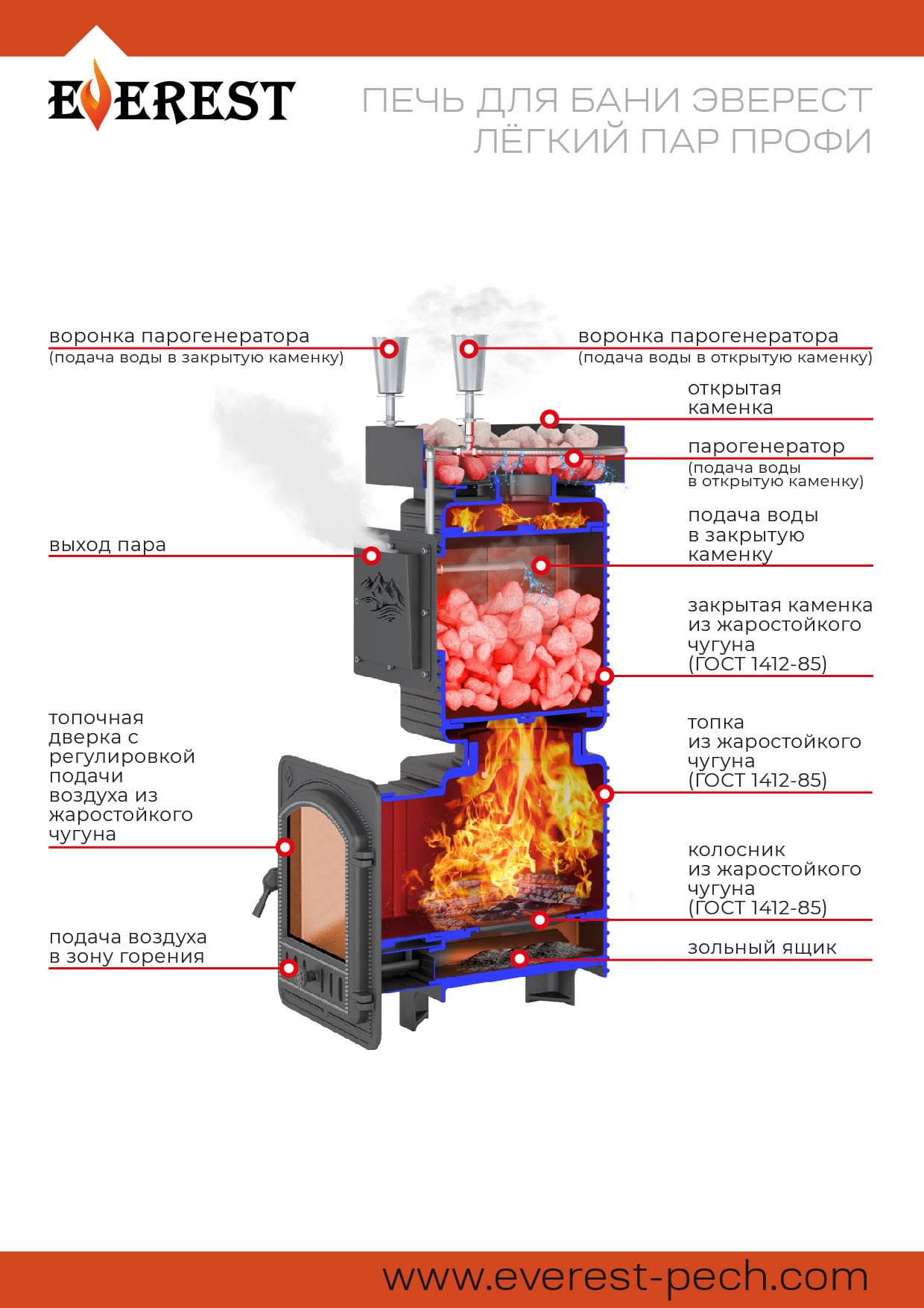 Чугунная печь для идеальной парилки - ЭВЕРЕСТ Лёгкий Пар Профи