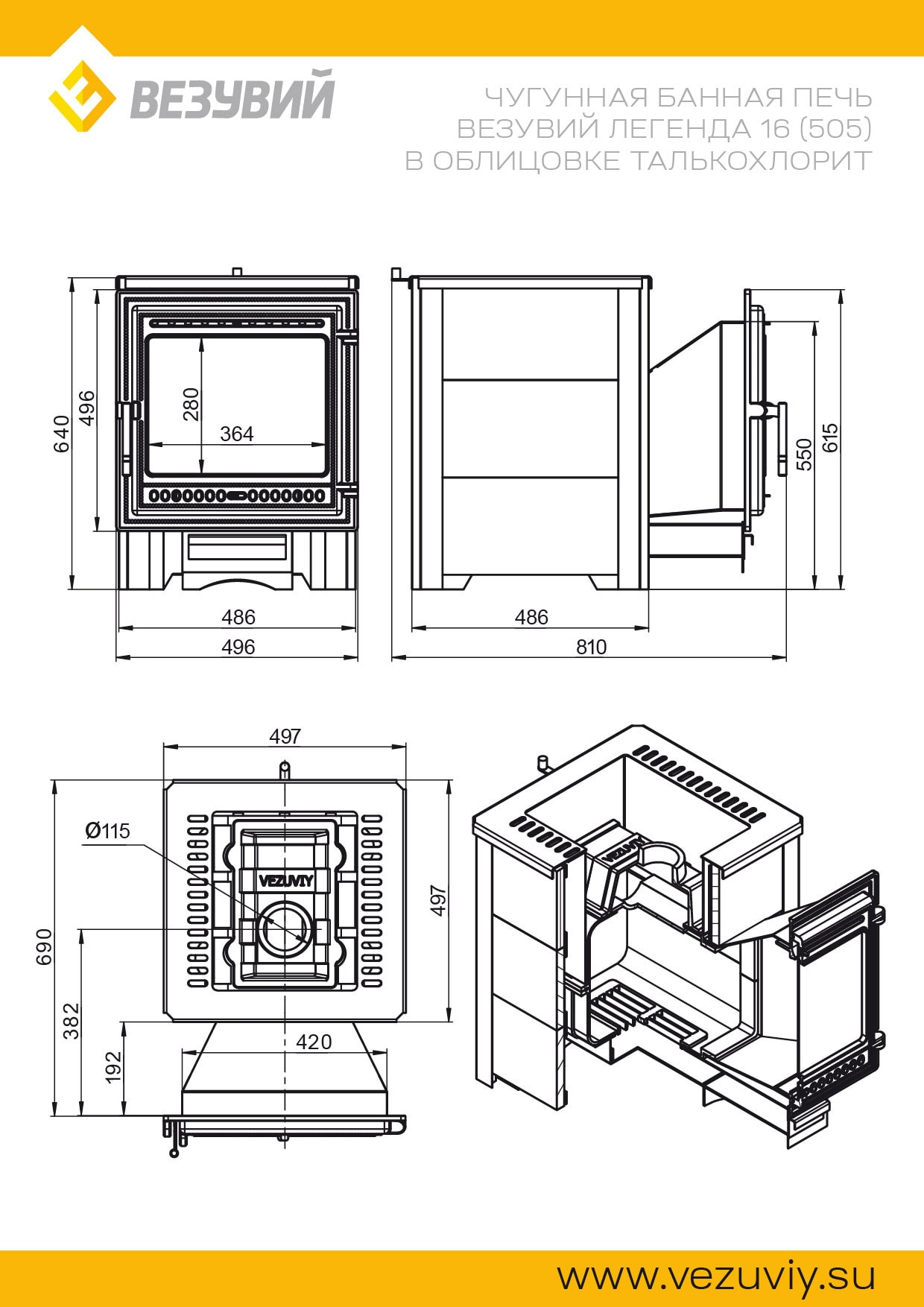 Печь для бани Везувий Легенда 16 (505) талькохлорит