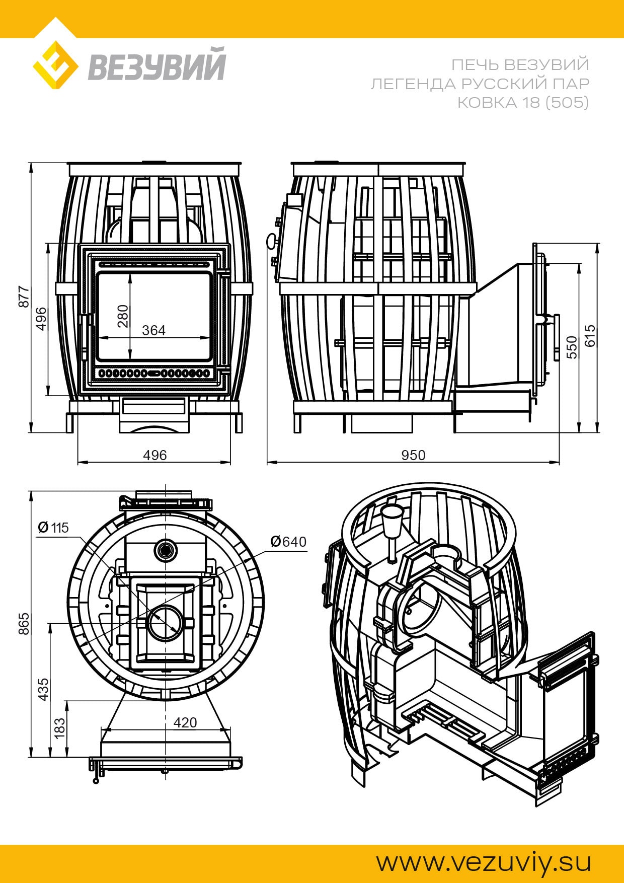 Печи для бани серии «Легенда Русский пар 18» рассчитаны на парные объёмом от 8 до 18 м3.
