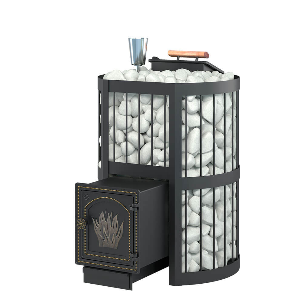 В конструкции данной печи предусмотрен топочный тоннель, при помощи которого печь топится из соседнего помещения, смежного с парильным.