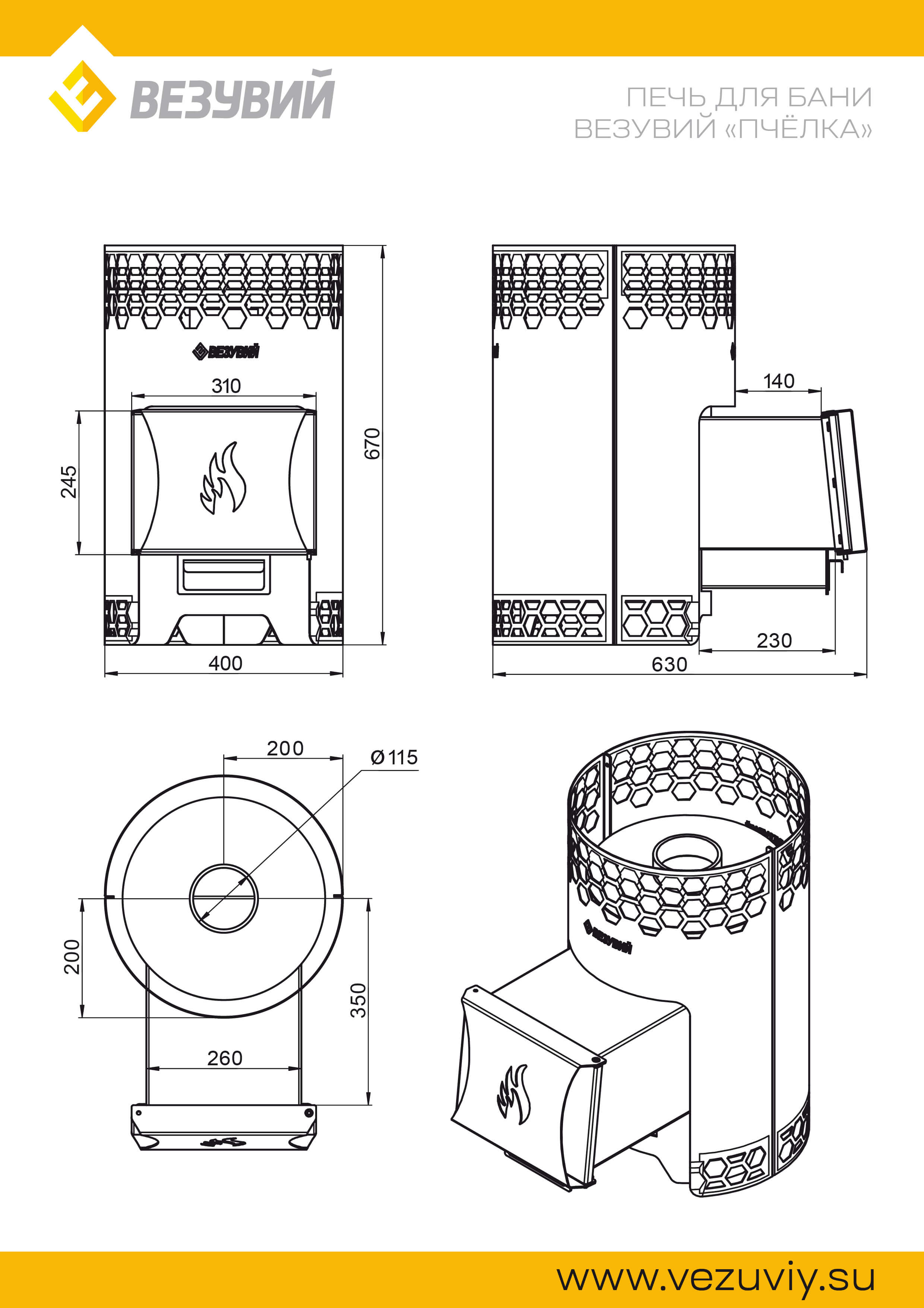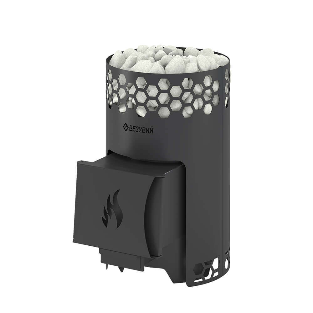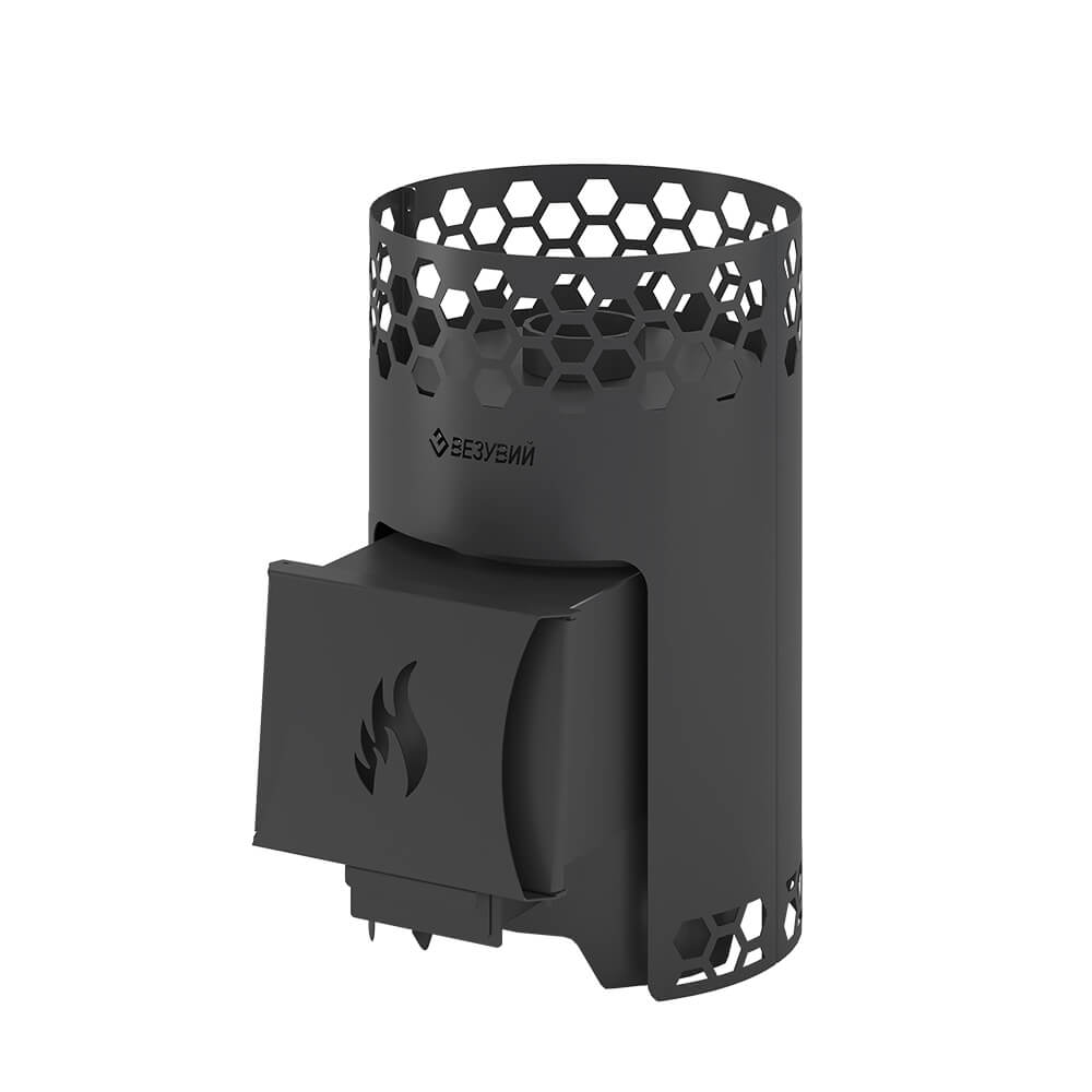 Дровяная печь для бани Везувий "Чёрная Пчёлка", из котловой стали, с топочным выносом, с сеткой конвектором на 30 кг. камней, рассчитана на отопление бани от 6 до 14 м3.
