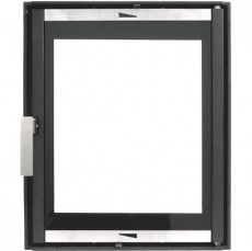 Дверца изготовлена из чугуна в сочетании с фурнитурой из хромированной стали.