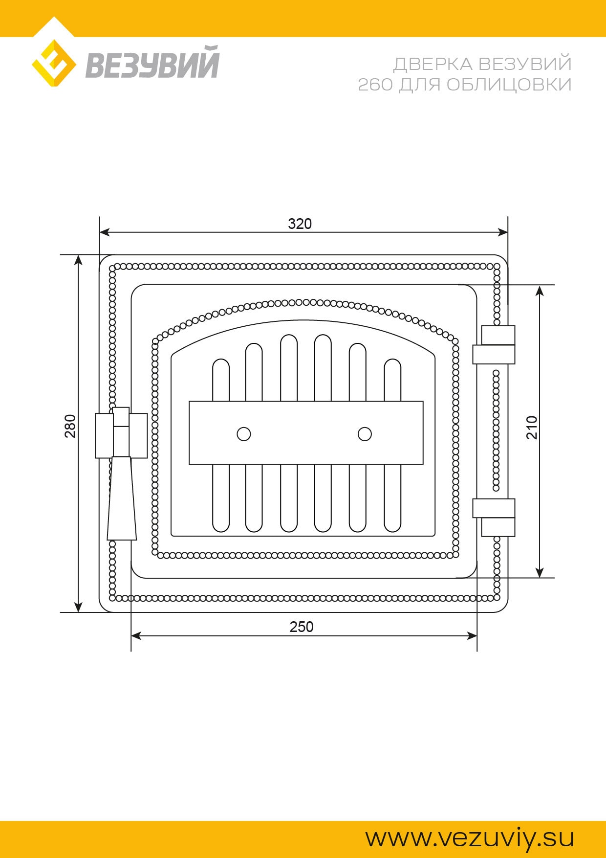 Чугунная топочная дверца ВЕЗУВИЙ 260 для банных печей в облицовке, посадочный размер: 250х210мм.