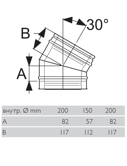 Отвод 30° элемент - колено модульного дымохода из нержавеющей стали Schiedel Permeter (Шидель Перметр) диаметром - Ø 150 мм, с утеплителем шириной 25 мм. Отвод, (колено) дымохода используется при необходимости изменения направления дымохода на 30 градусов, для обхода препятствий по ходу канала дымохода.