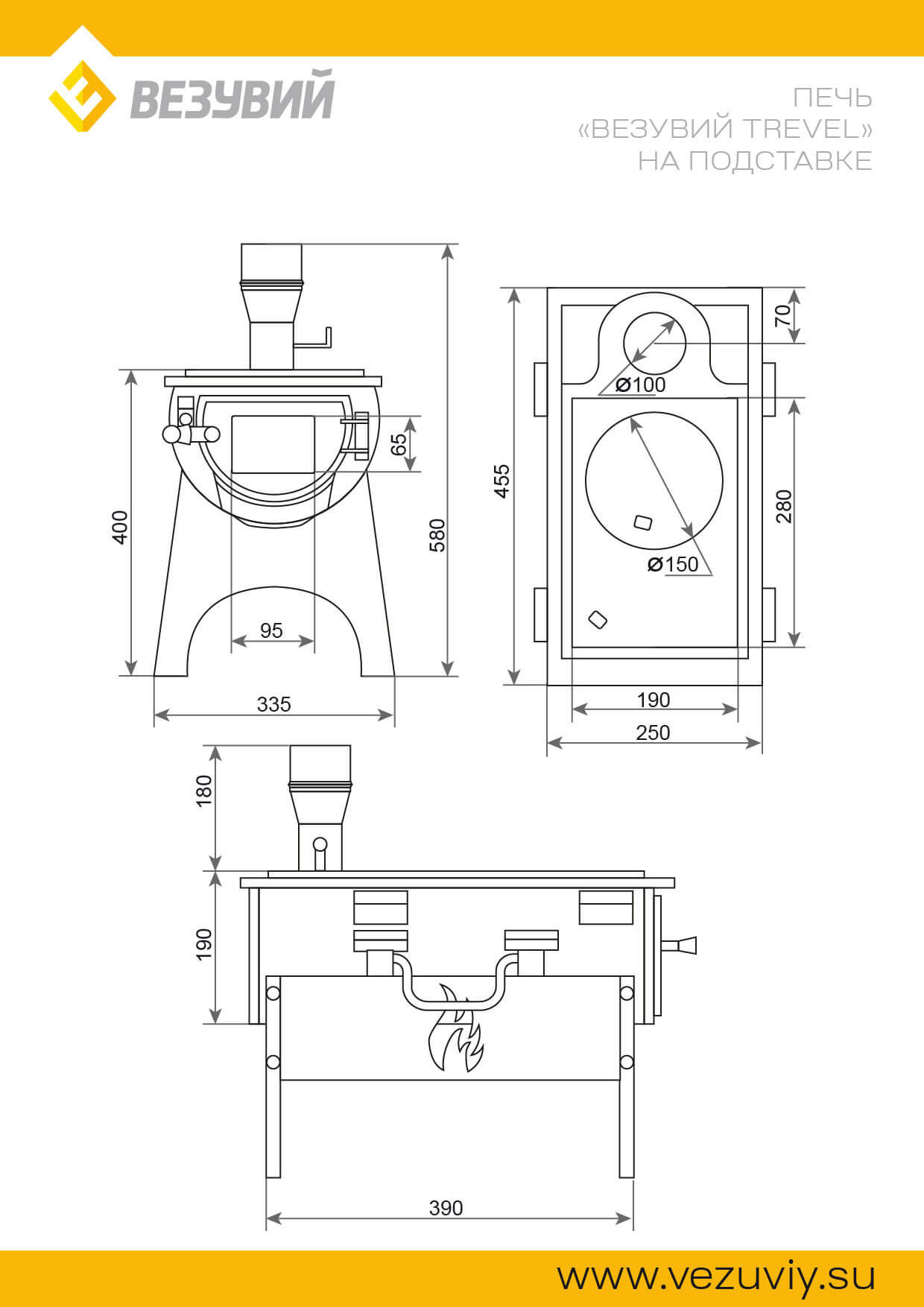 Походная печь "Везувий Travel" (из чугуна) на подставке